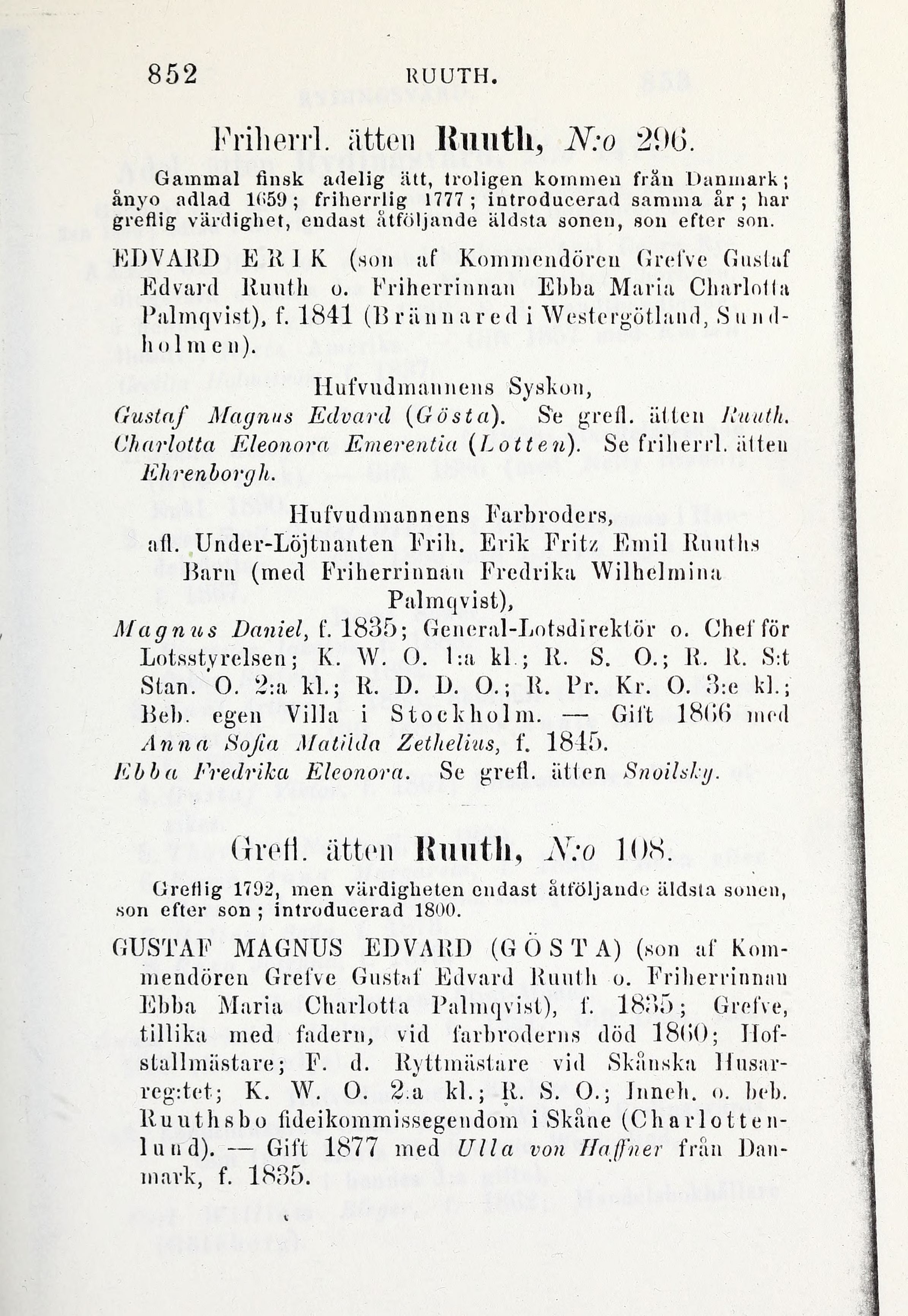 Gustaf Magnus Edvard (Gösta). Se grefi. ätten Ruuth.