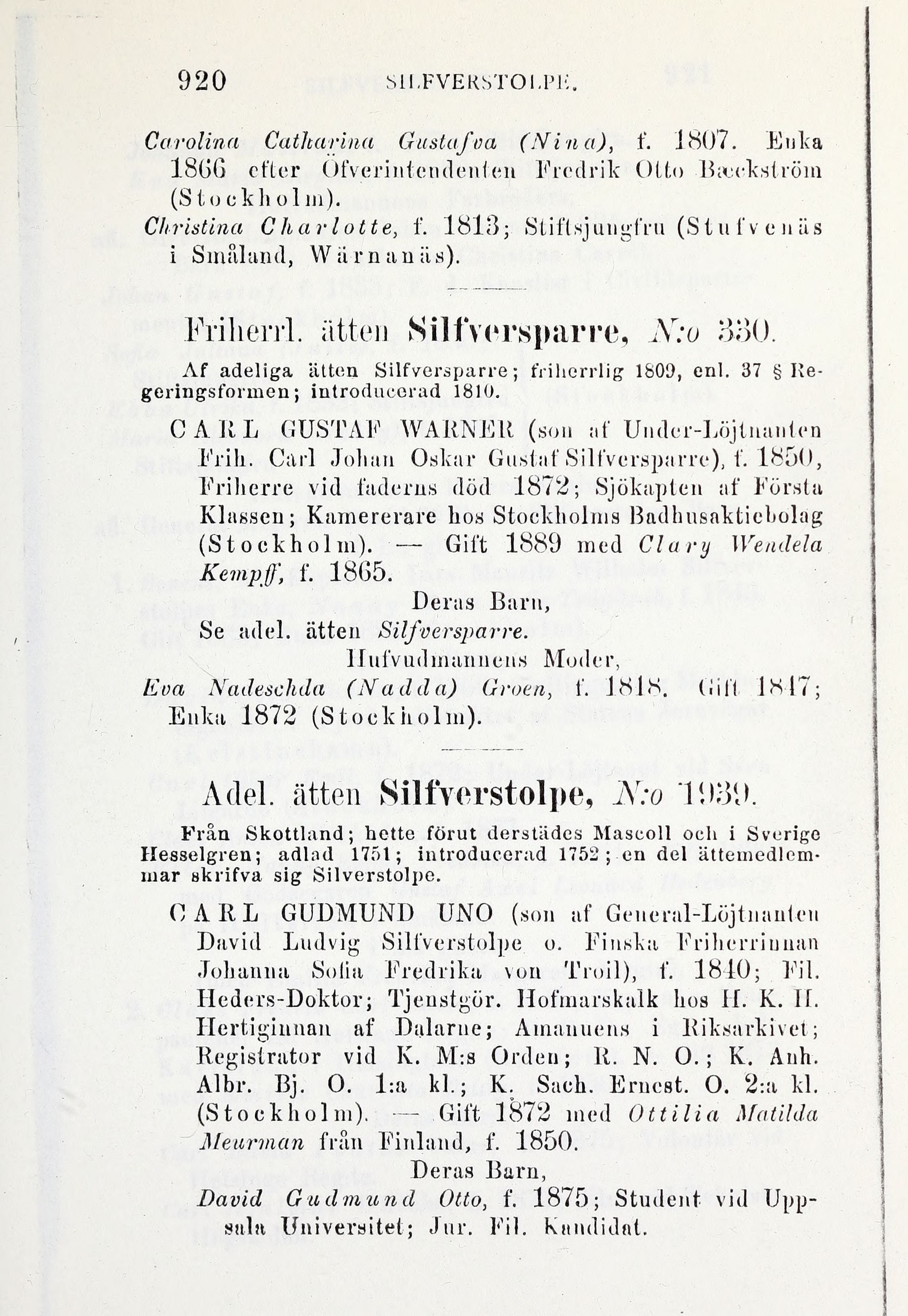 Adel. ätten Silfverstolpe, N:o "l!)3i>.