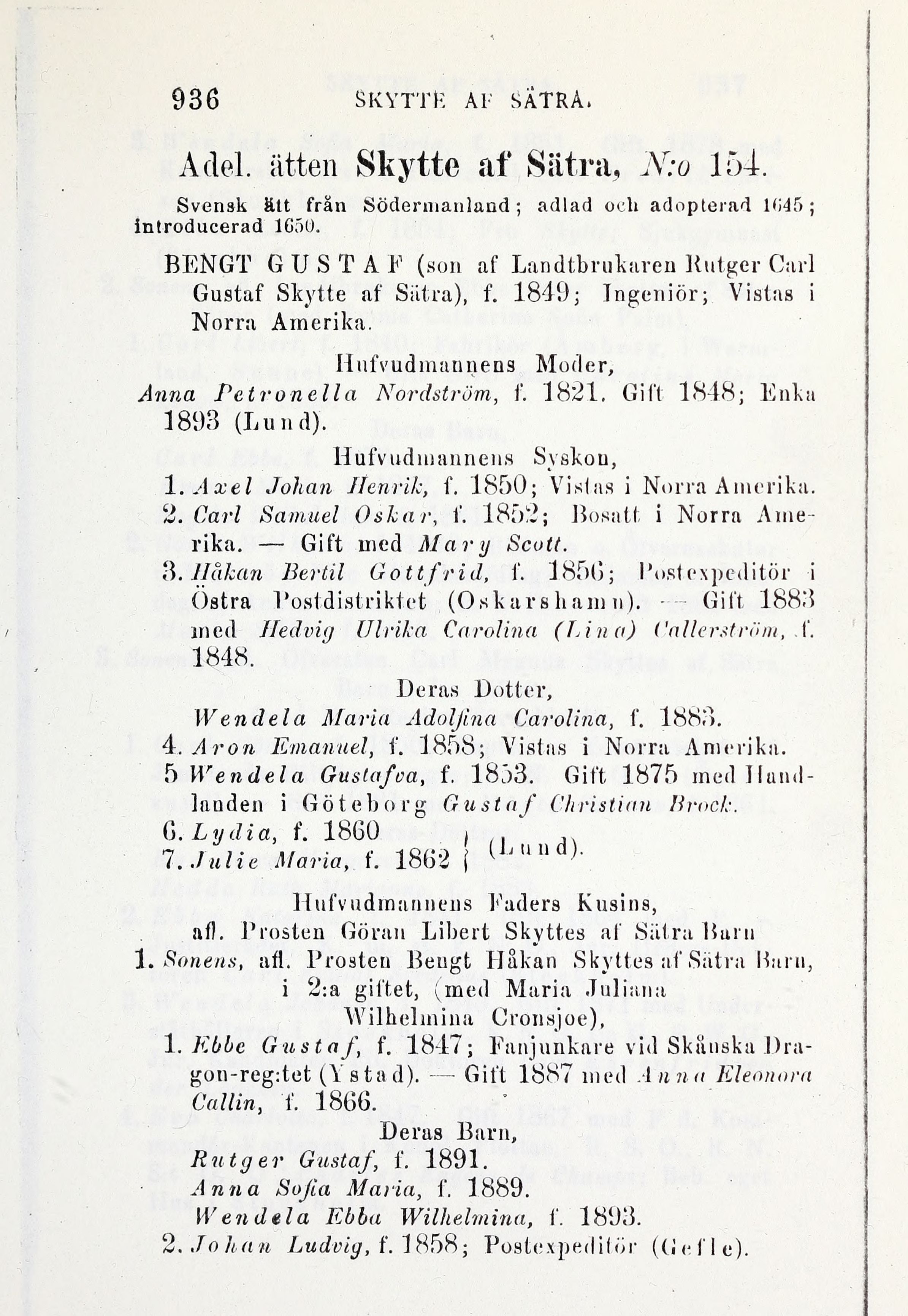 Adel. ätten Skytte af Sätra, N:o 154.