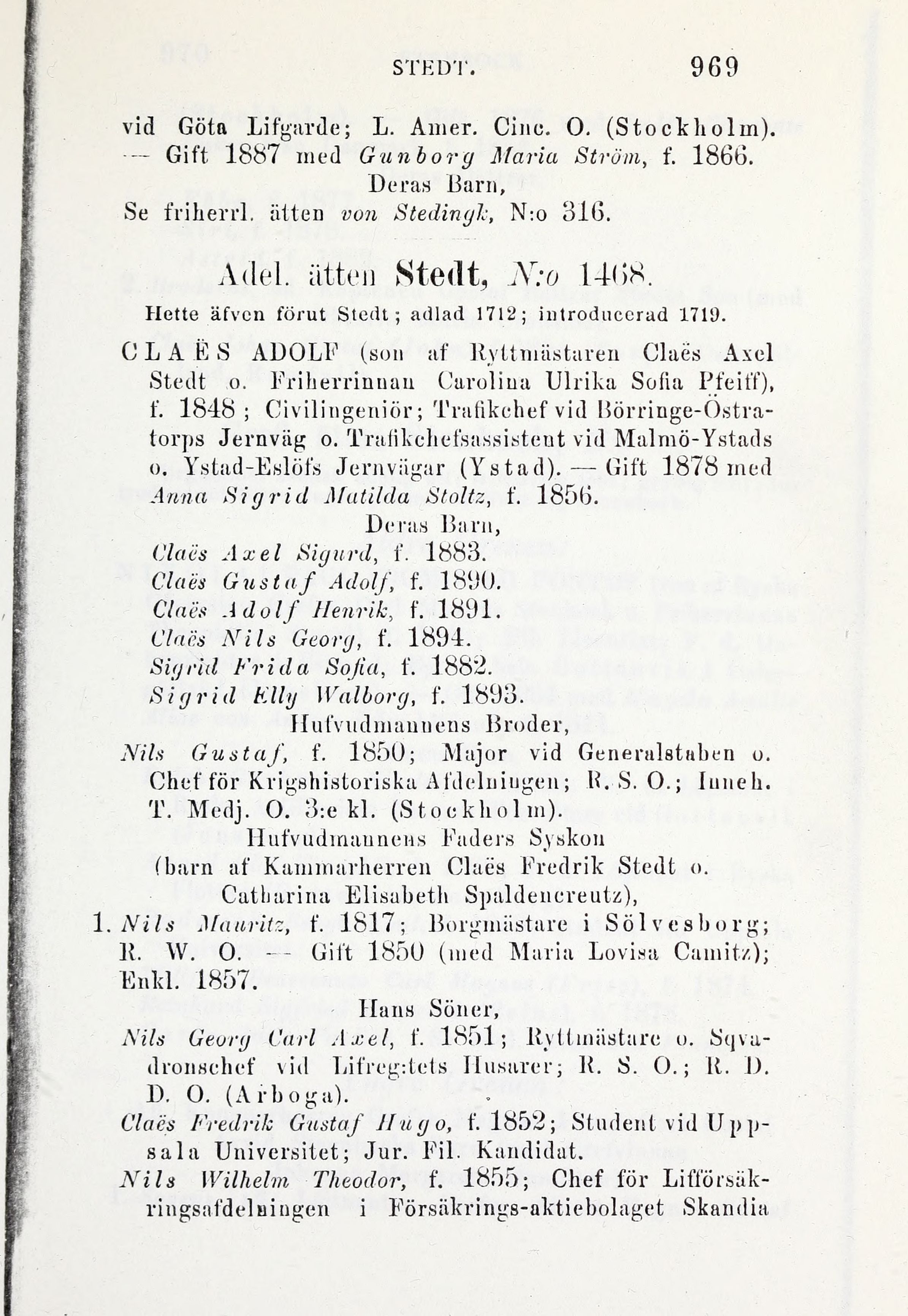 Hette äfven förut Stedt; adlad 1712; introducerad "1719.