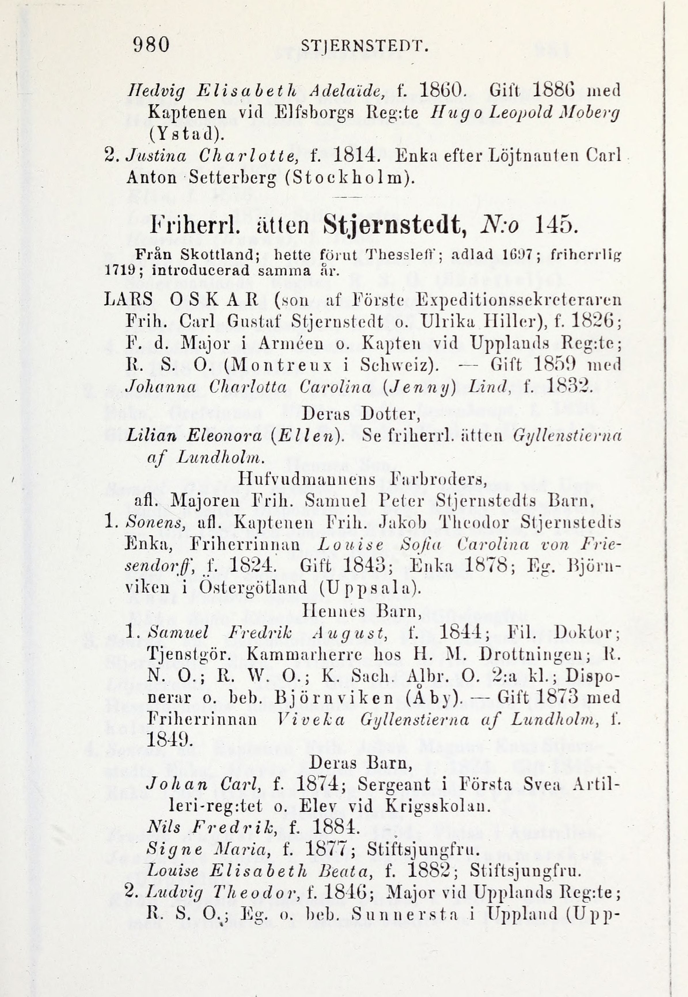 Frih. Carl Gustaf Stjernstedt o. Ulrika Hiller), f. 1826;