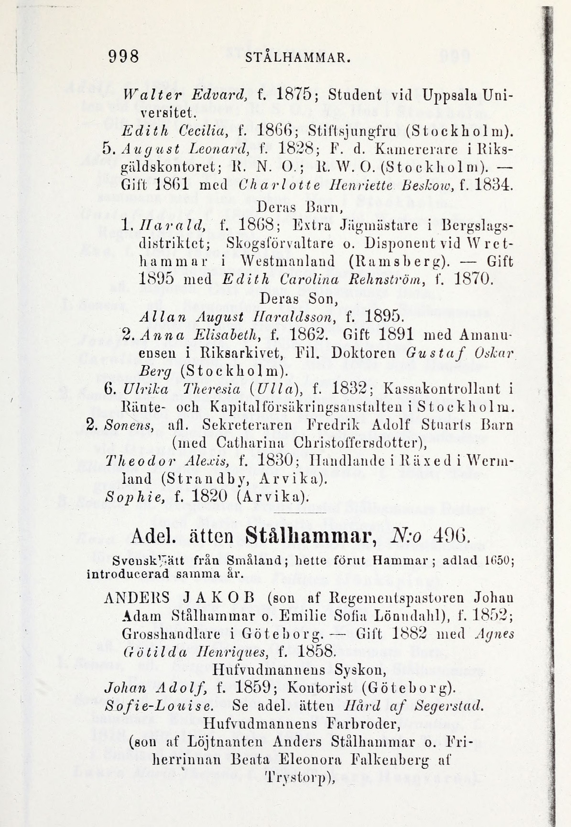 Adam Stålhammar o. Emilie Sofia Lönndahl), f. 1852;
