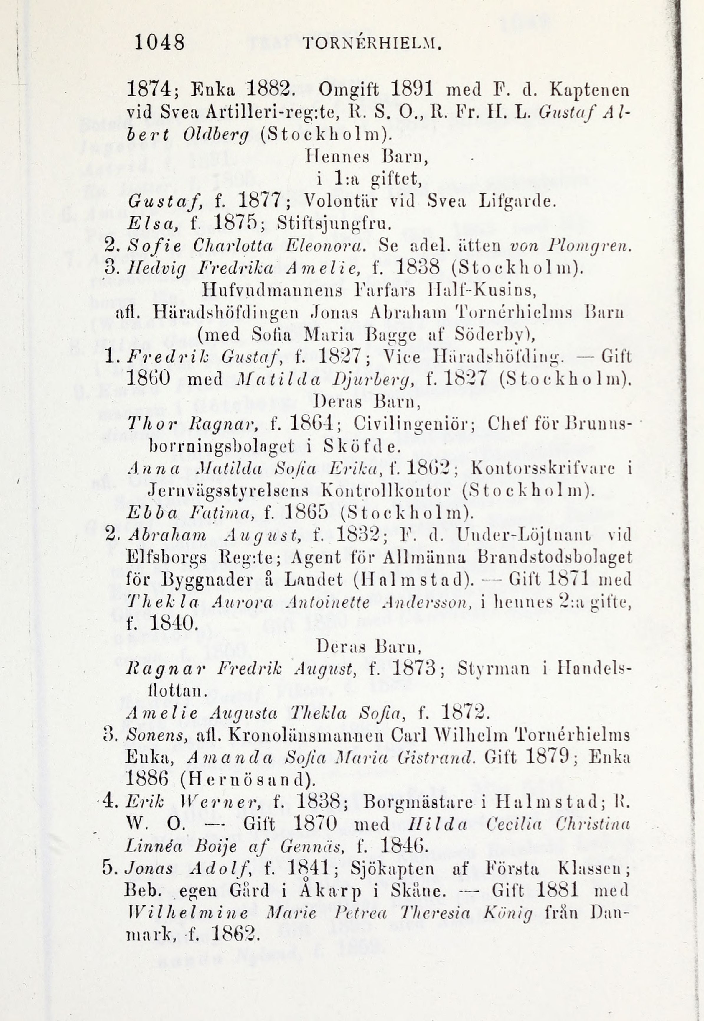 1 .Fredrik Gustaf, f. 1827; Vice Häradshöfding. — Gift