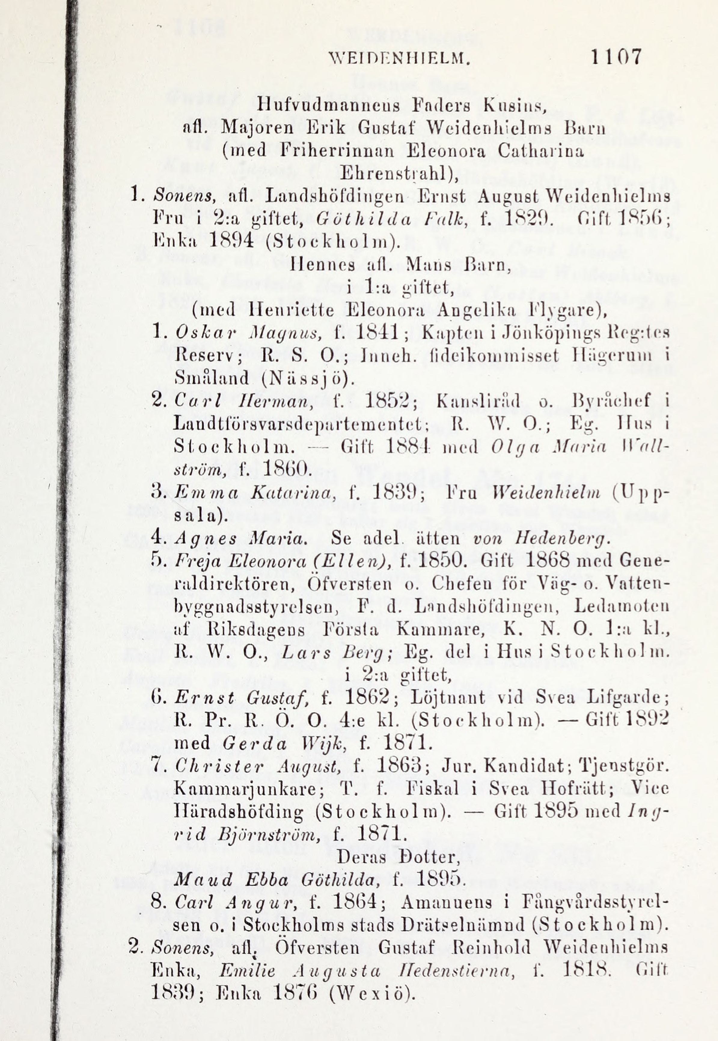 1. Sonens, afl. Landshöfdingen Ernst August Weidenhielms