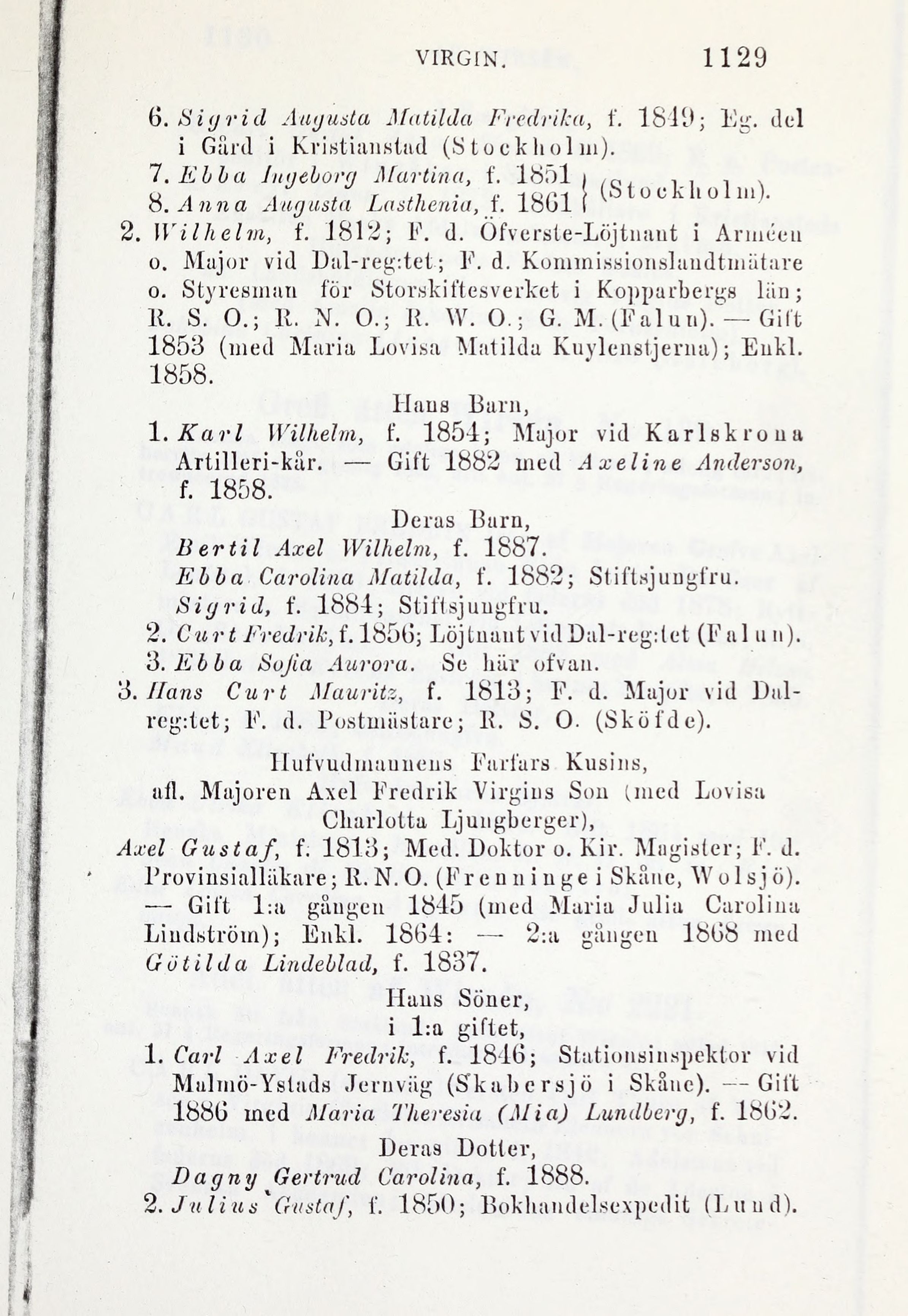 1. Karl Wilhelm, f. 1854; Major vid Karlskrona