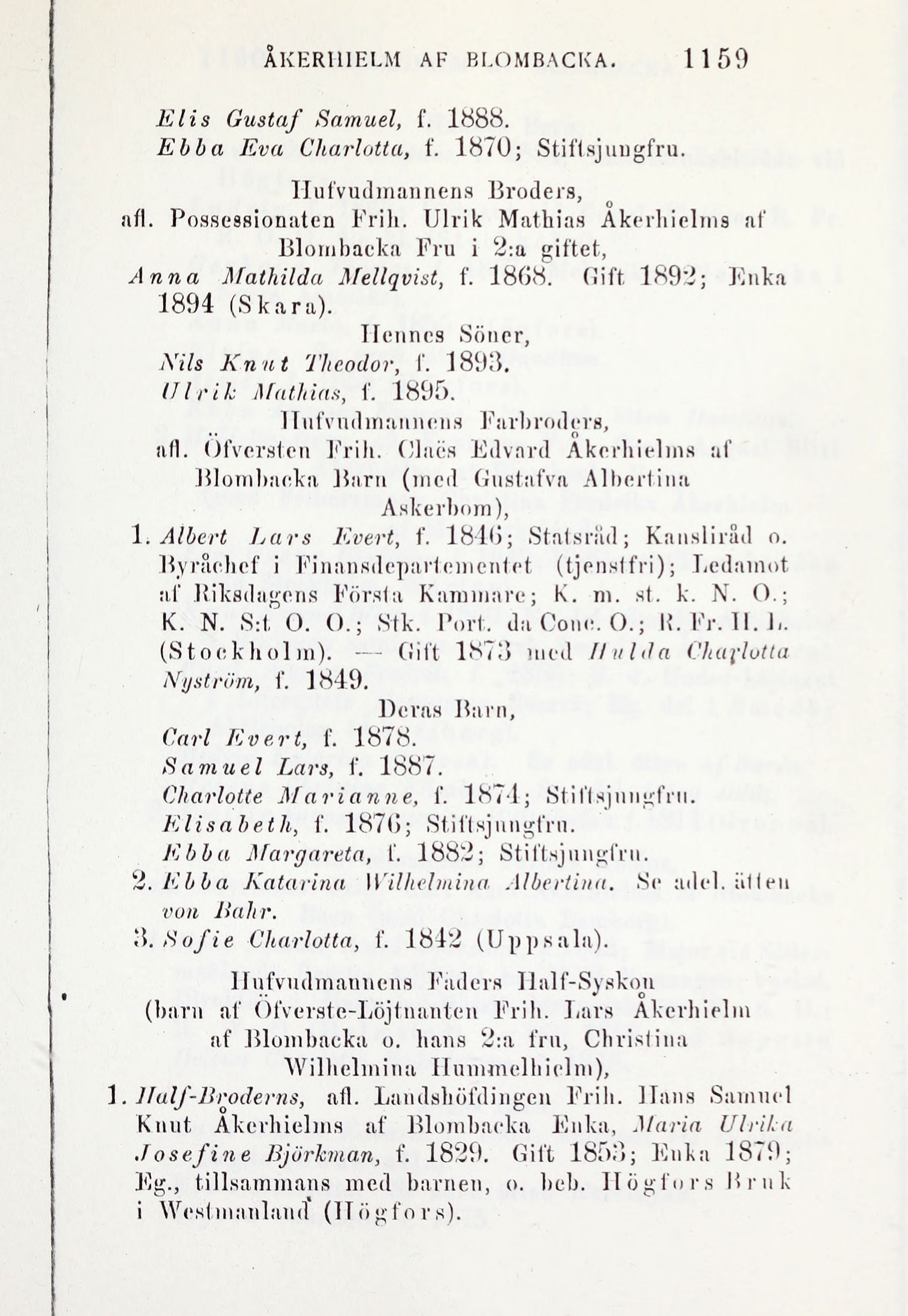 1. Half-Broderns, afl. Landshöfdingen Frih. Hans Samuel