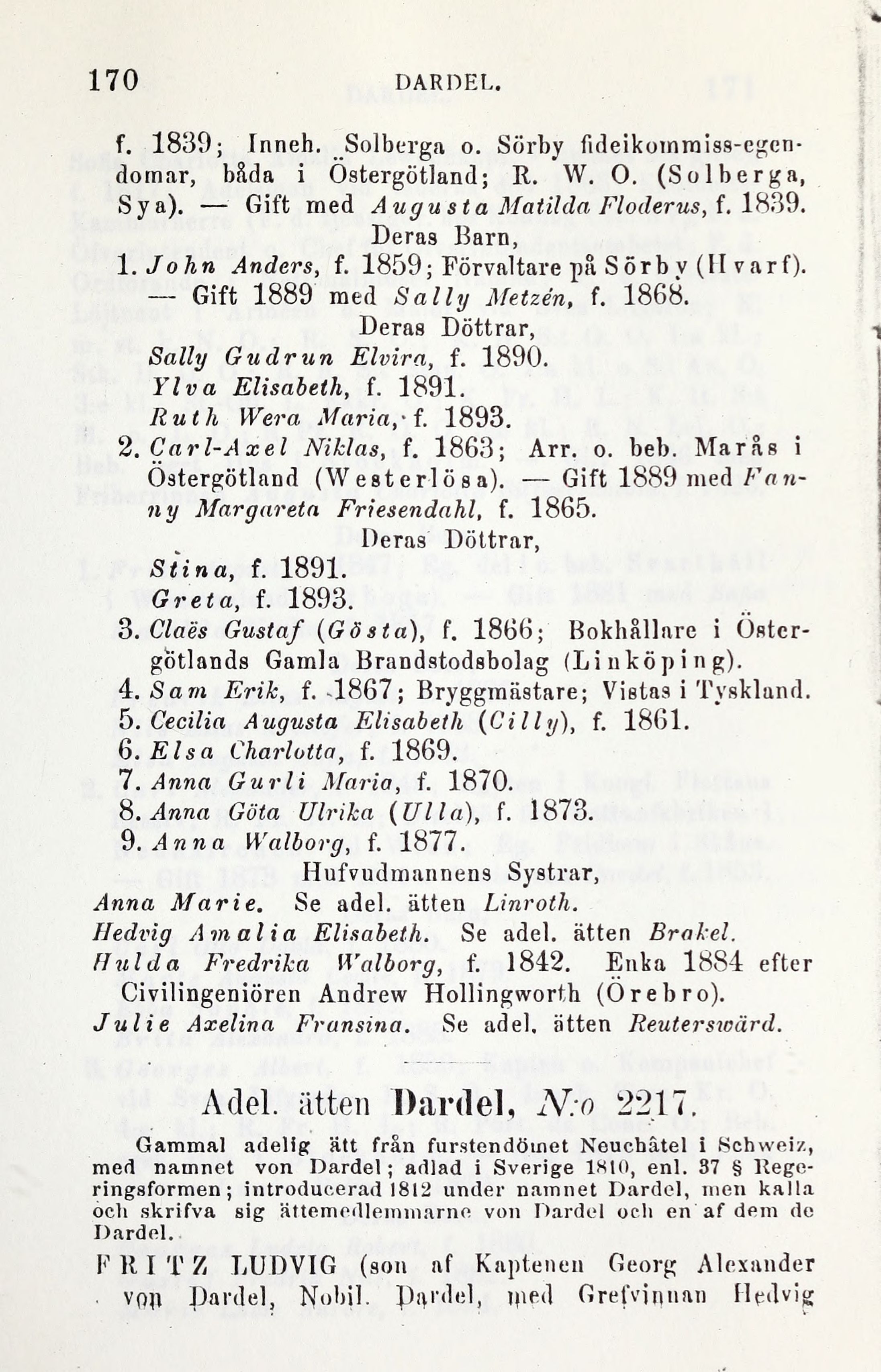och skrifva sig ättemedlemmarne von Dardel och en af dem de