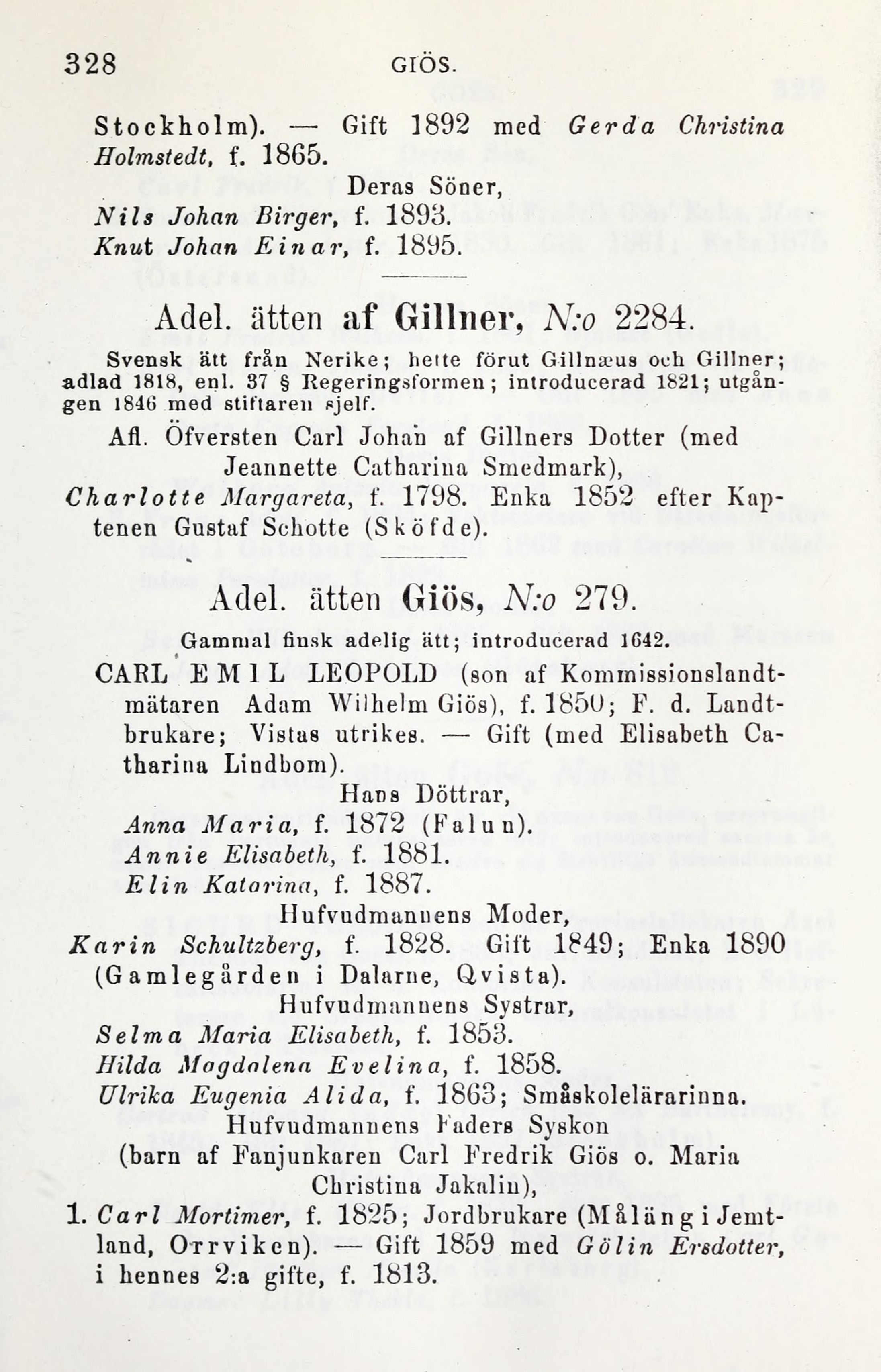 Svensk ätt från Nerike; hette förut Gillnæus oeh Gillner;