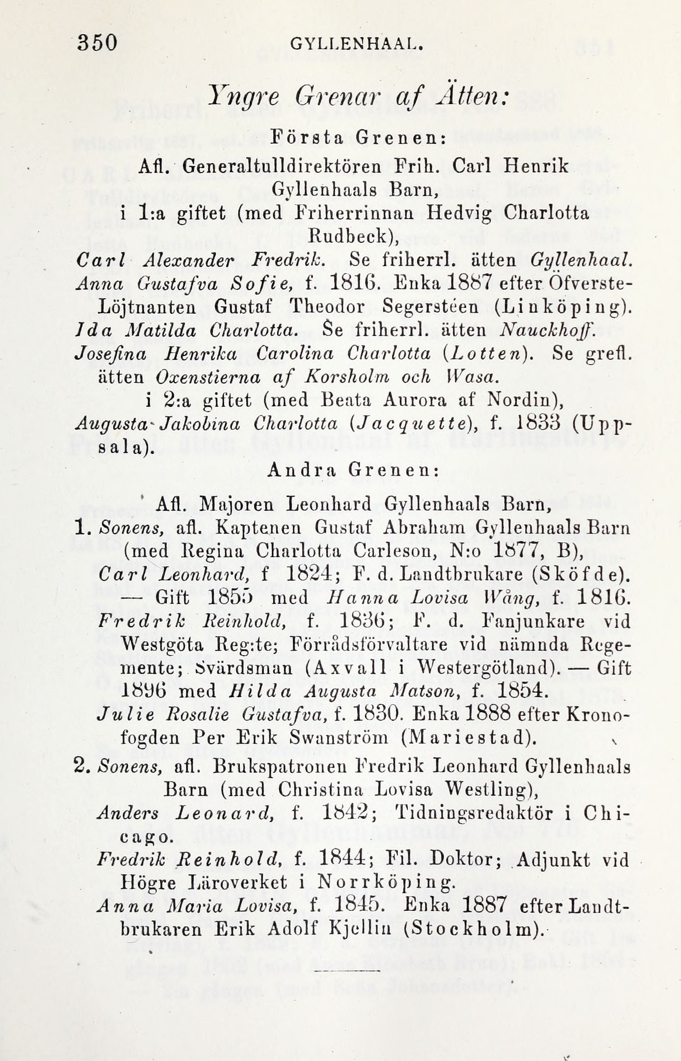 2. Sonens, afl. Brukspatronen Fredrik Leonhard Gyllenhaals