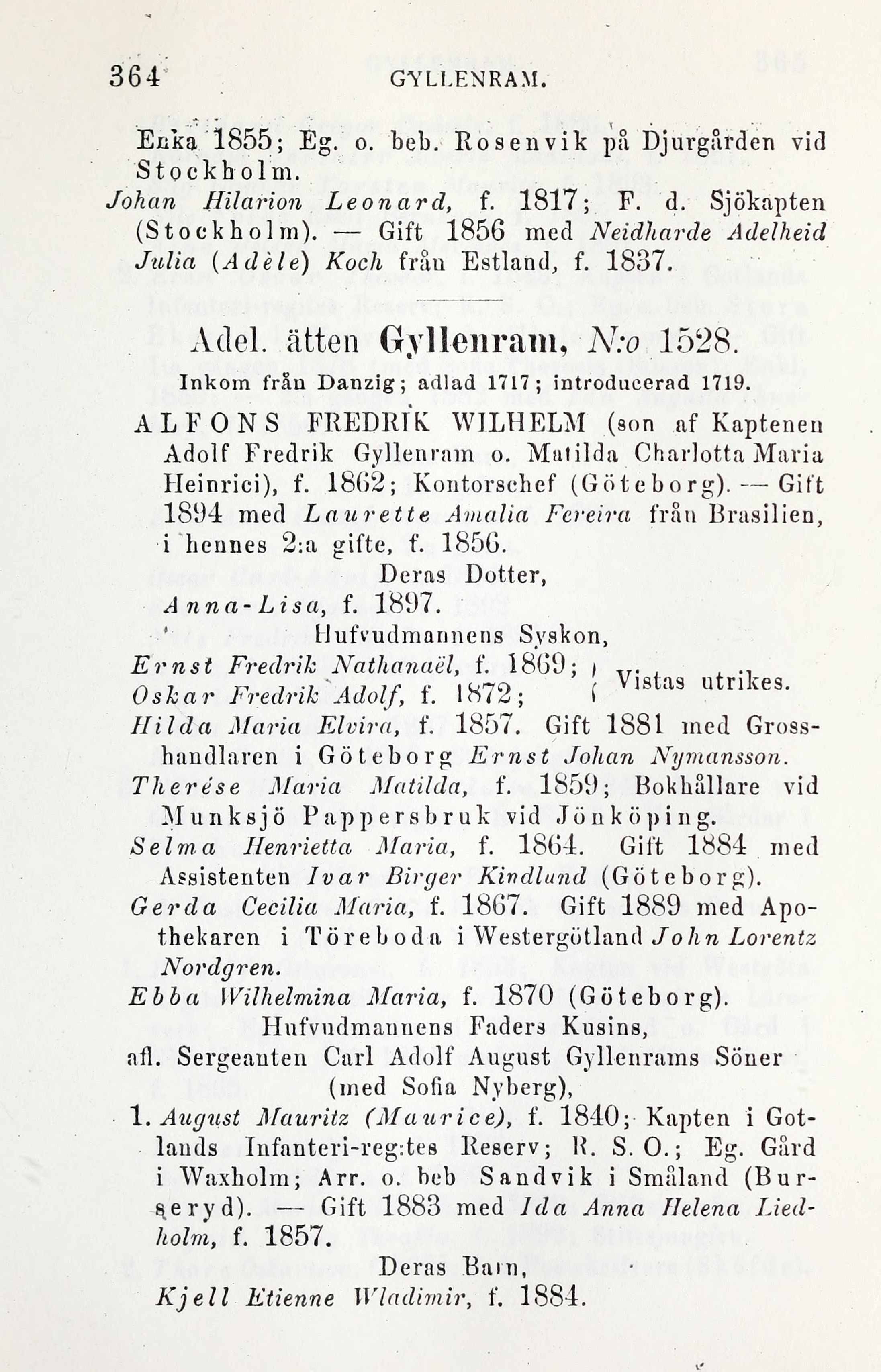 afl. Sergeanten Carl Adolf August Gyllenrams Söner