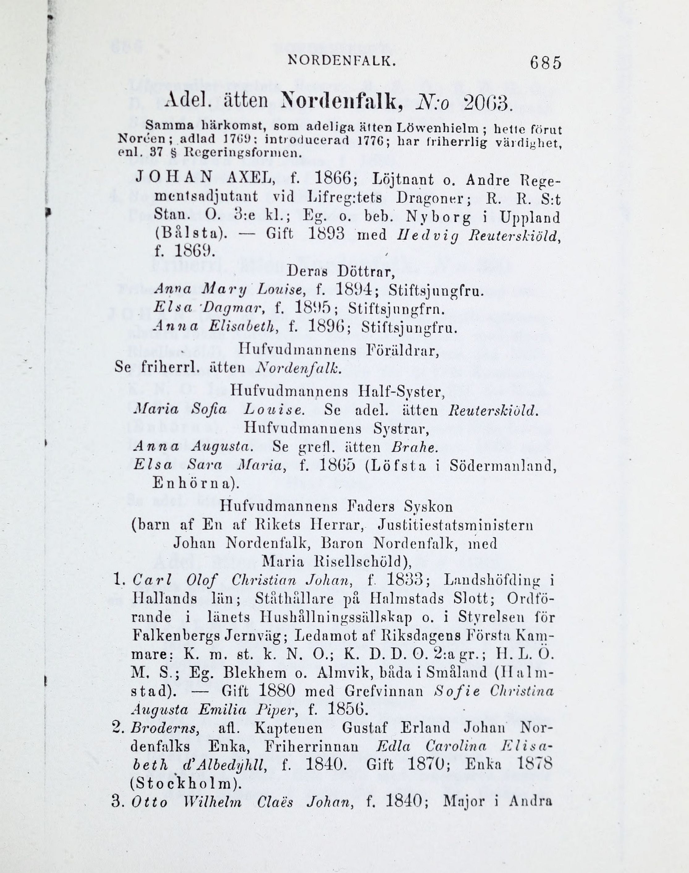 Noreen; adlad 17(iD: introducerad J77G; har friherrlig väldighet,
