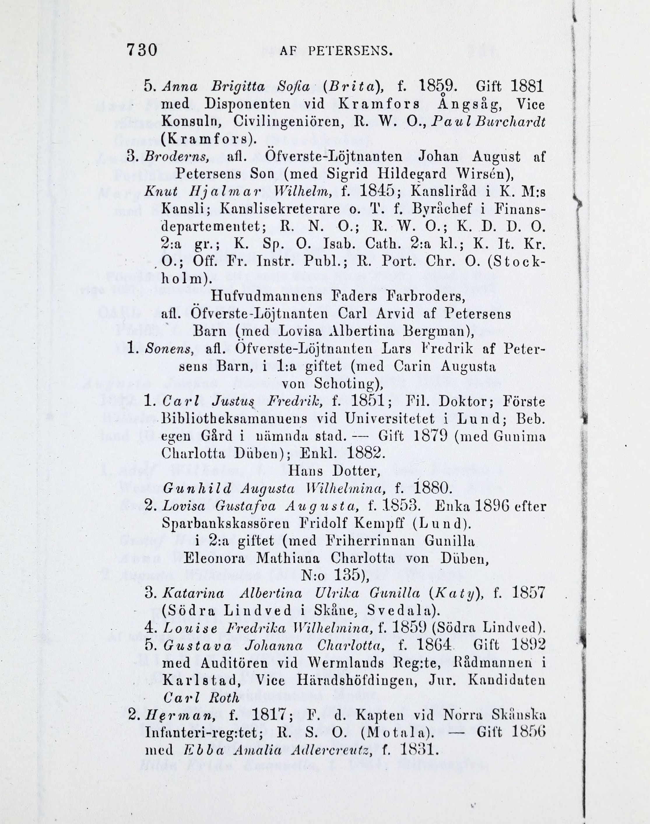 1. Sonens, afl. Ofverste-Löjtnanten Lars Fredrik af Peter-