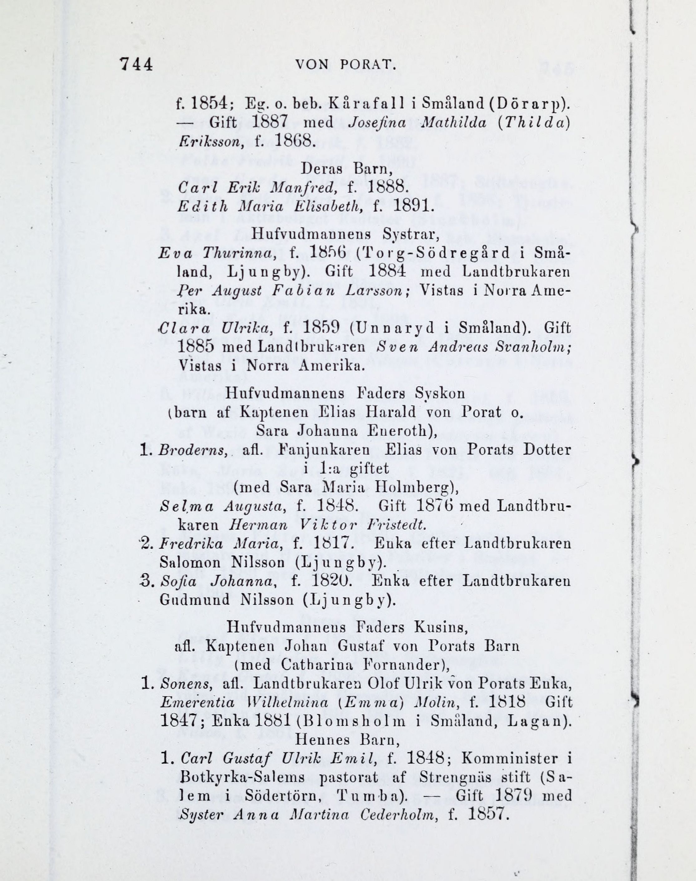 afl. Kaptenen Johan Gustaf von Porats Barn