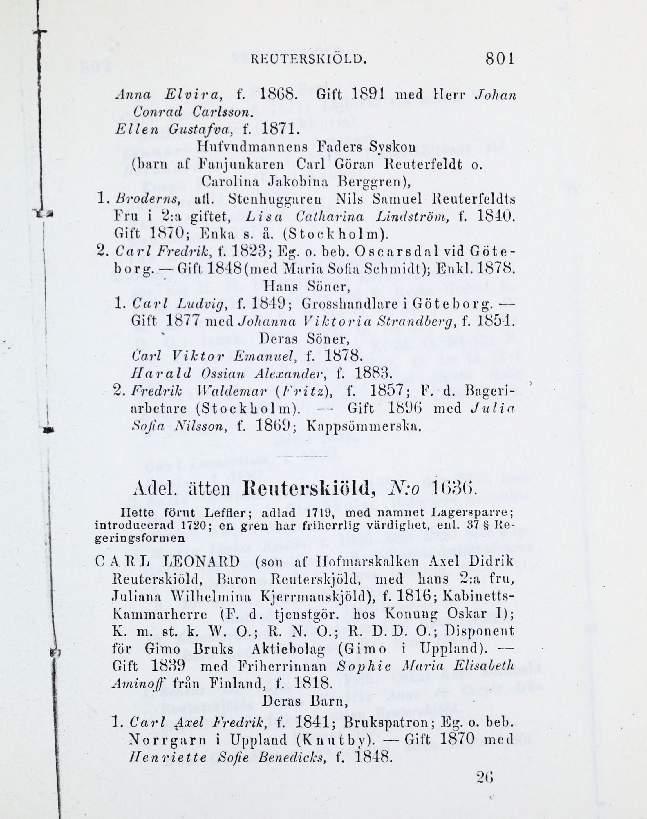 Adel. ätten Reuterskiöld, N:o 1(>3(>.