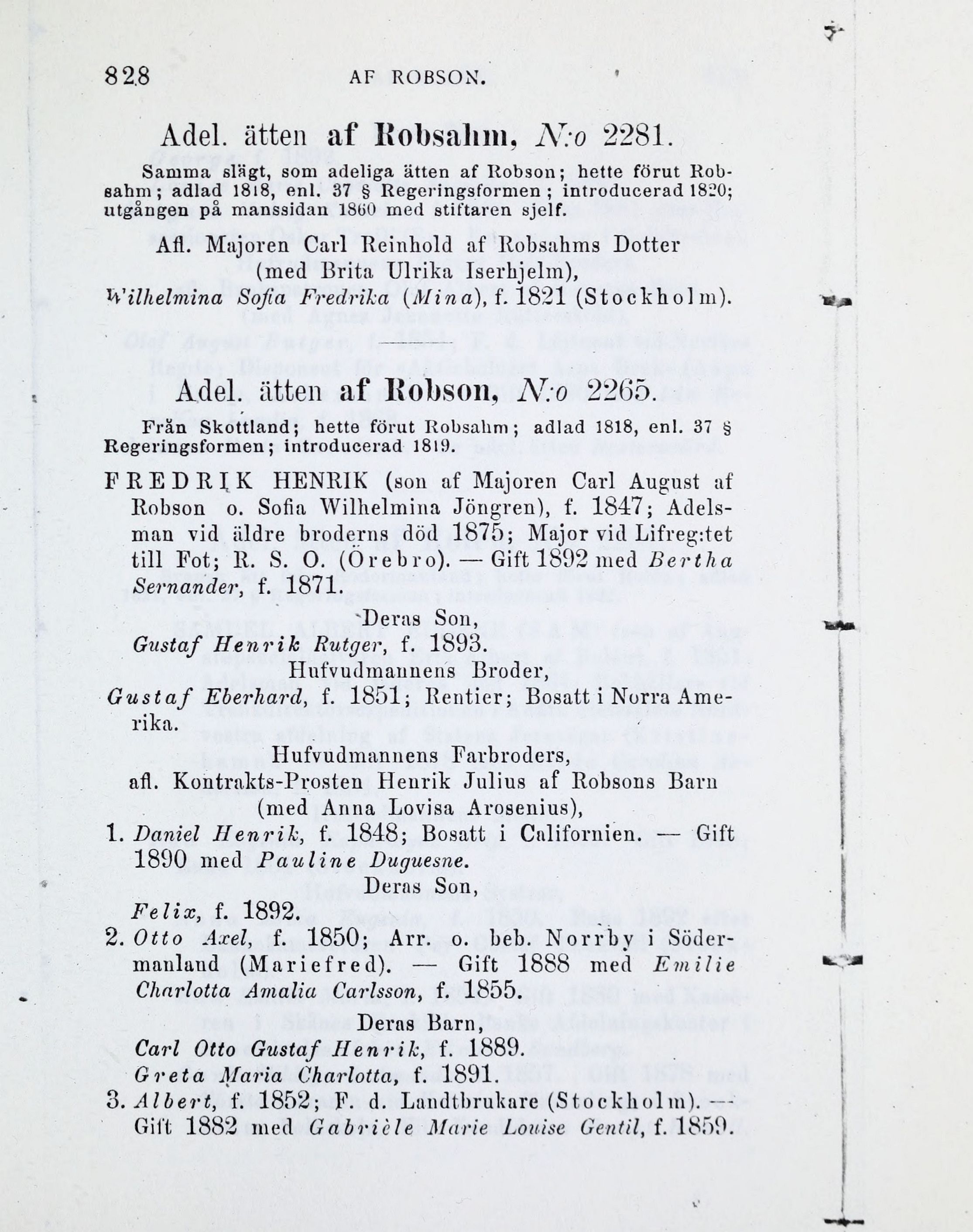 Adel. ätten af Robson, A7: o 2265.