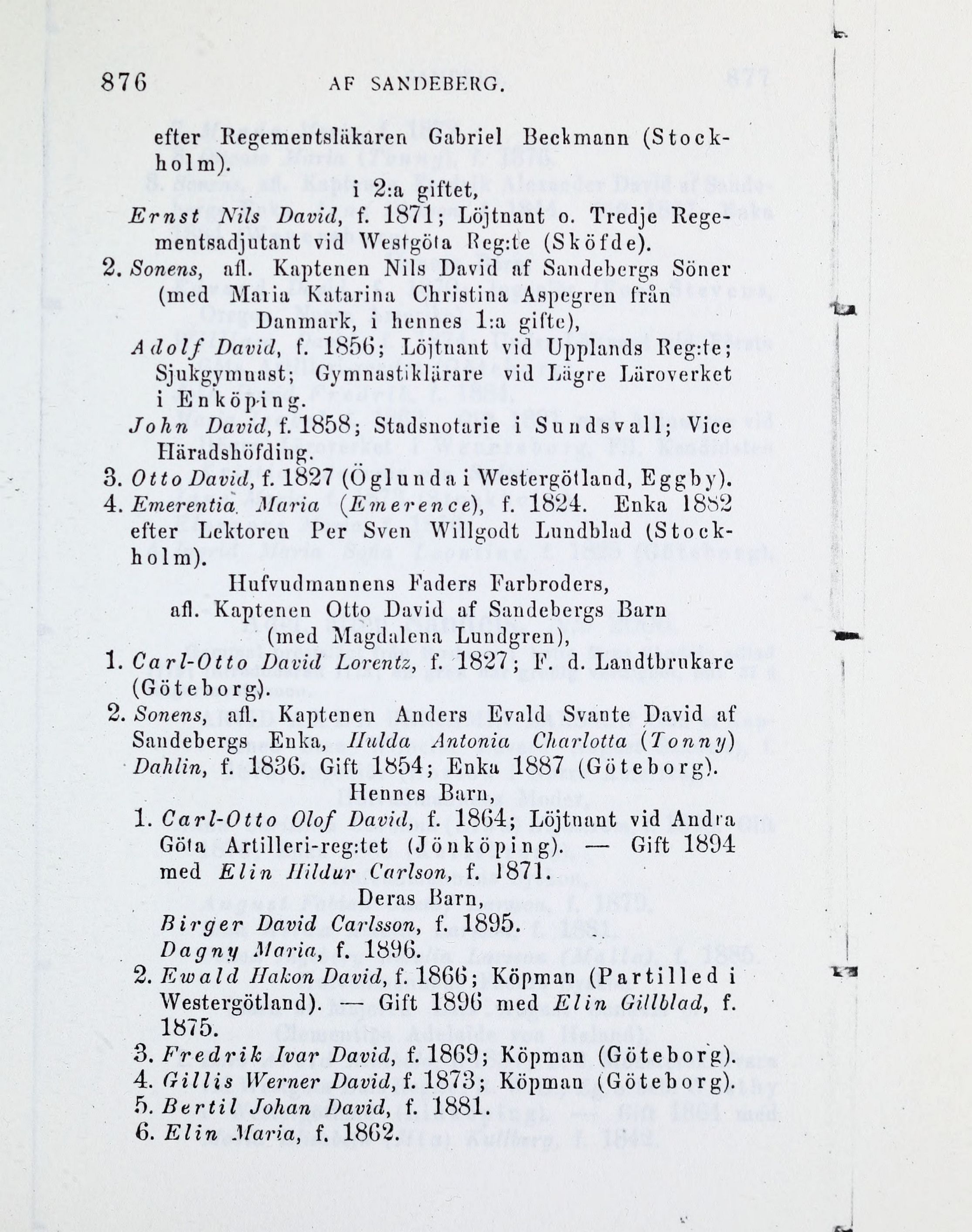 1. Carl-Otto Olof David, f. 1864; Löjtnant vid Andra