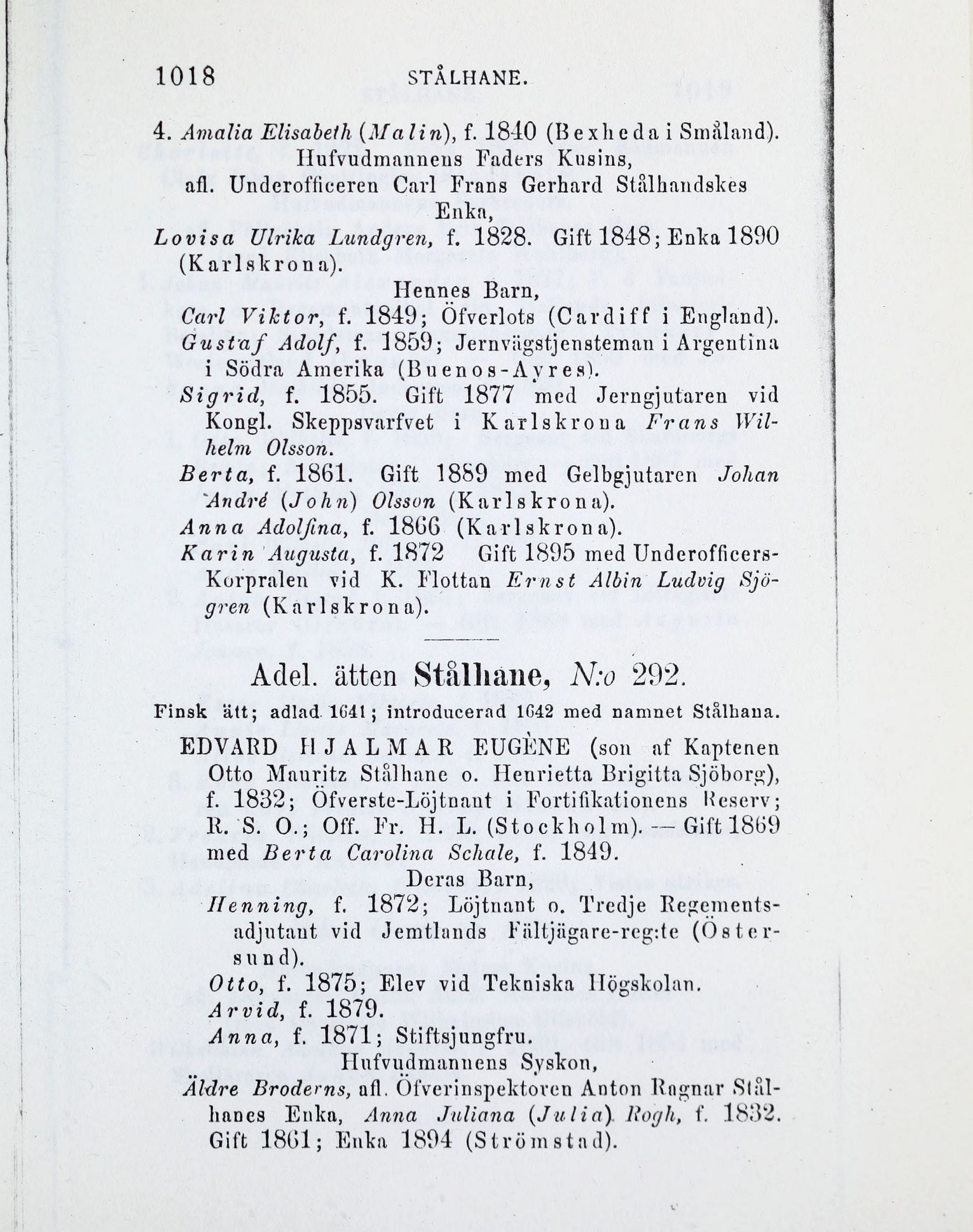 Finsk att; adlad.1641; introducerad 1G42 med namnet Stålbana.