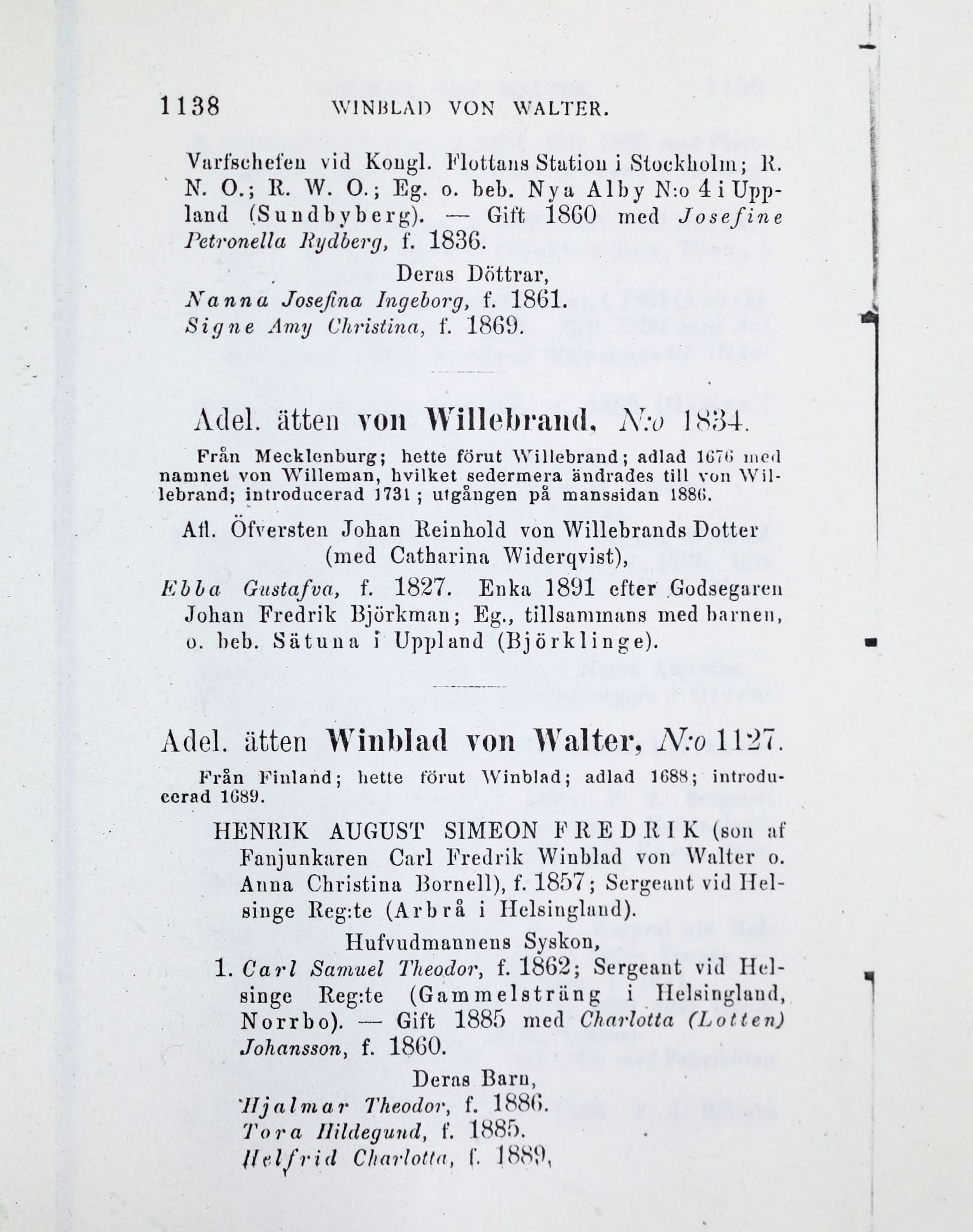 Adel. ätten Winblad von Walter, N:o 1127.