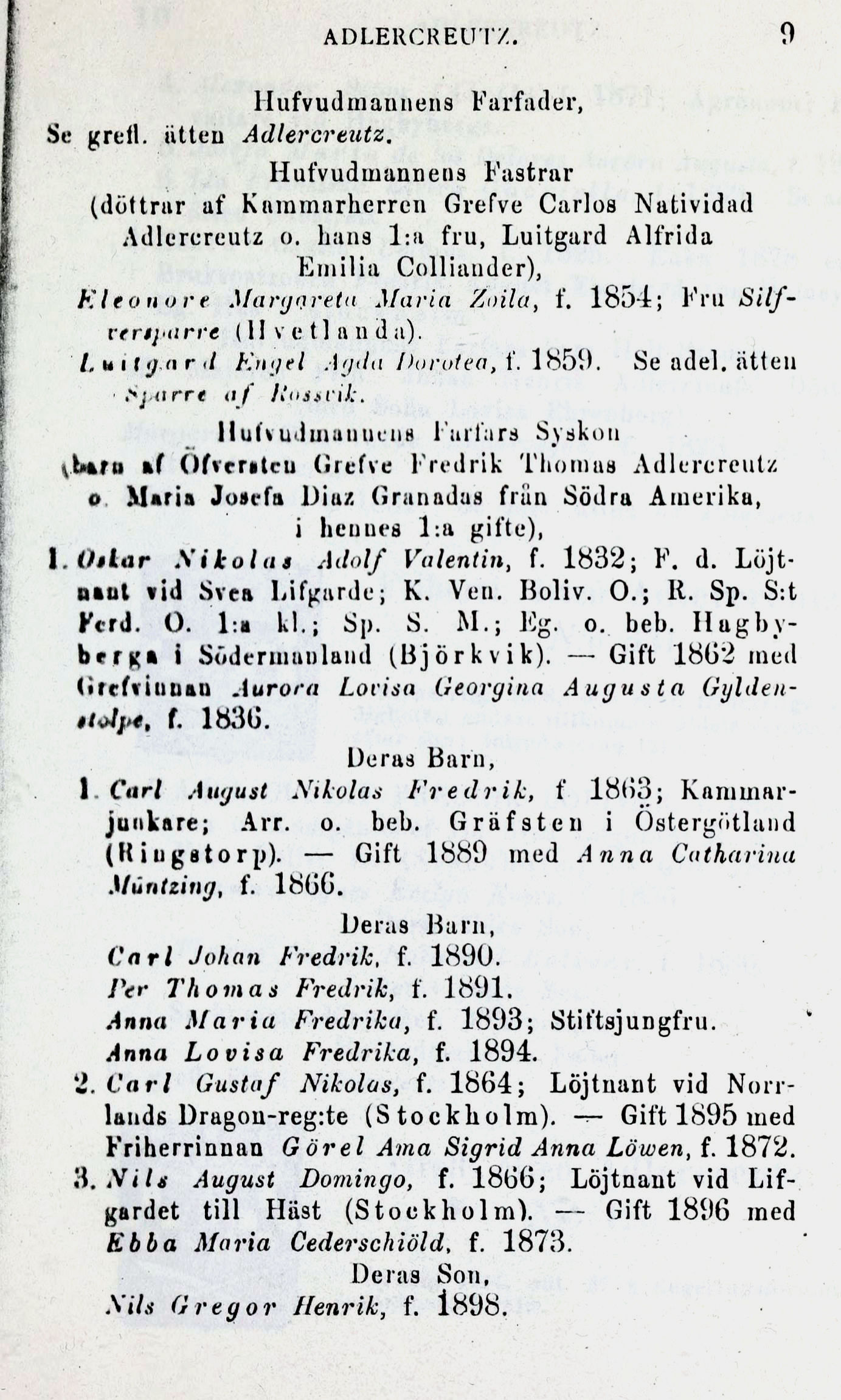 2. Carl Gustaf Nikolas, f. 1864; Löjtnant vid