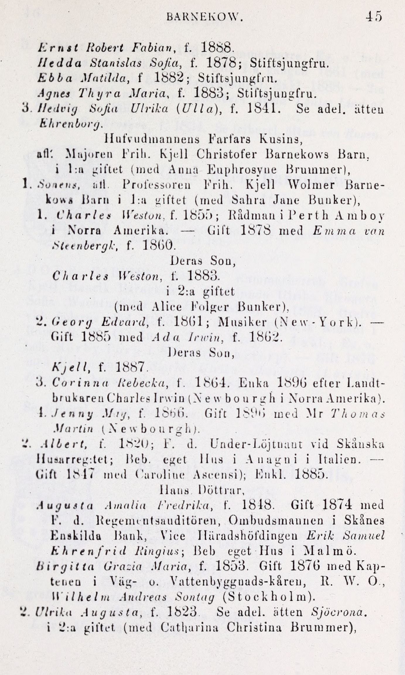a fl’. Majoren Frih. Kjell Christofer Barnekows Barn.