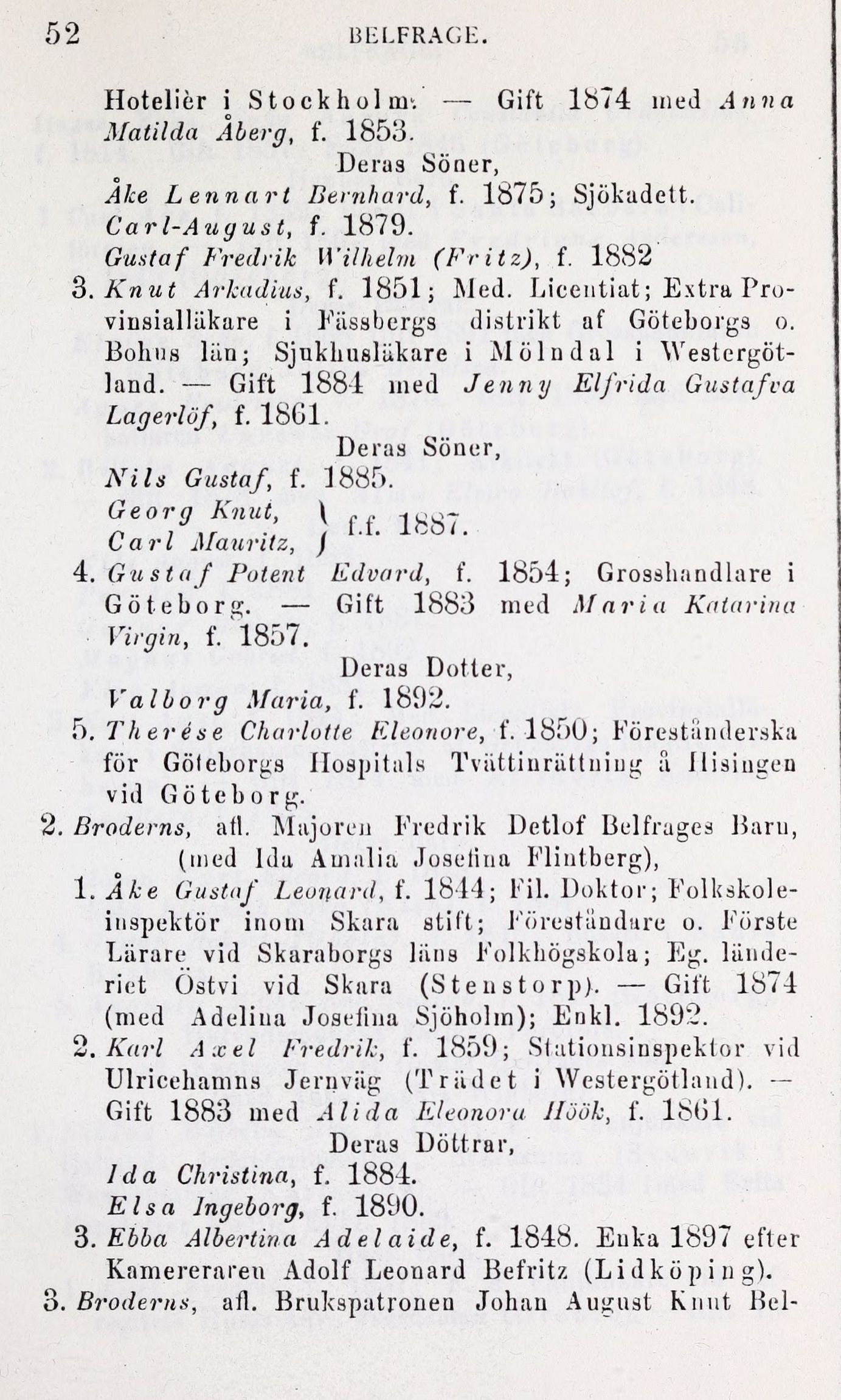 2. Broderns, atl. Majoren Fredrik Detlof Belfrages Barn,