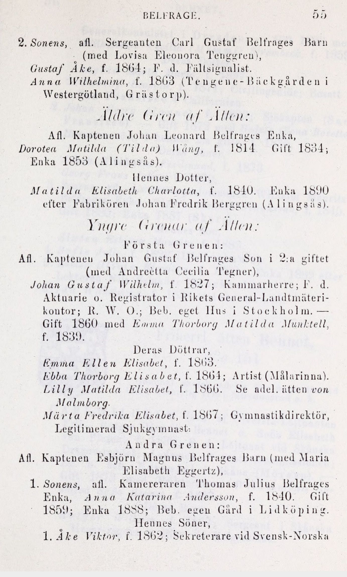 Afl. Kaptenen Johan Gustaf Belfrages Son i 2:a giftet