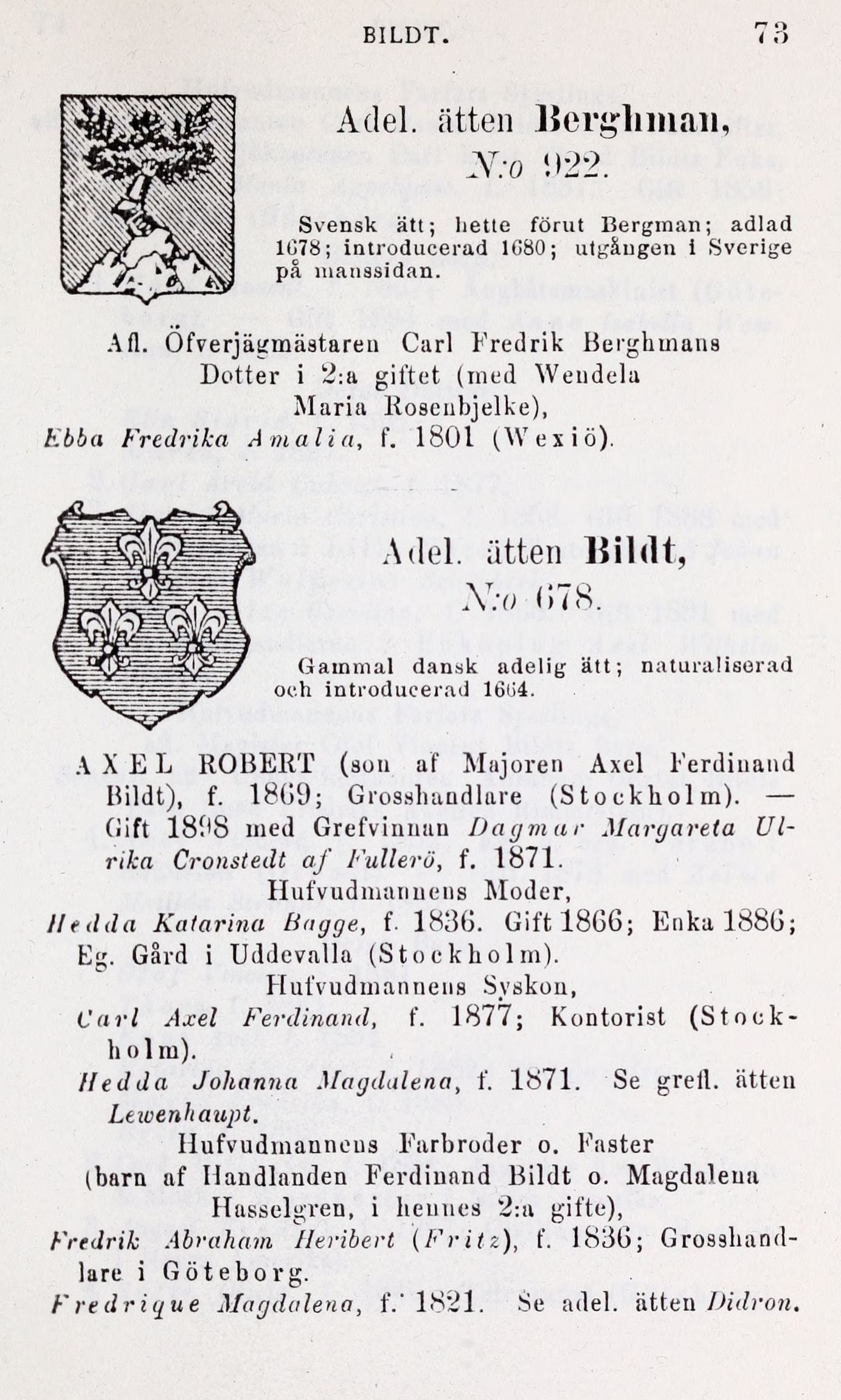 Bildt), f. 1809; Grosshandlare (Stockholm). —