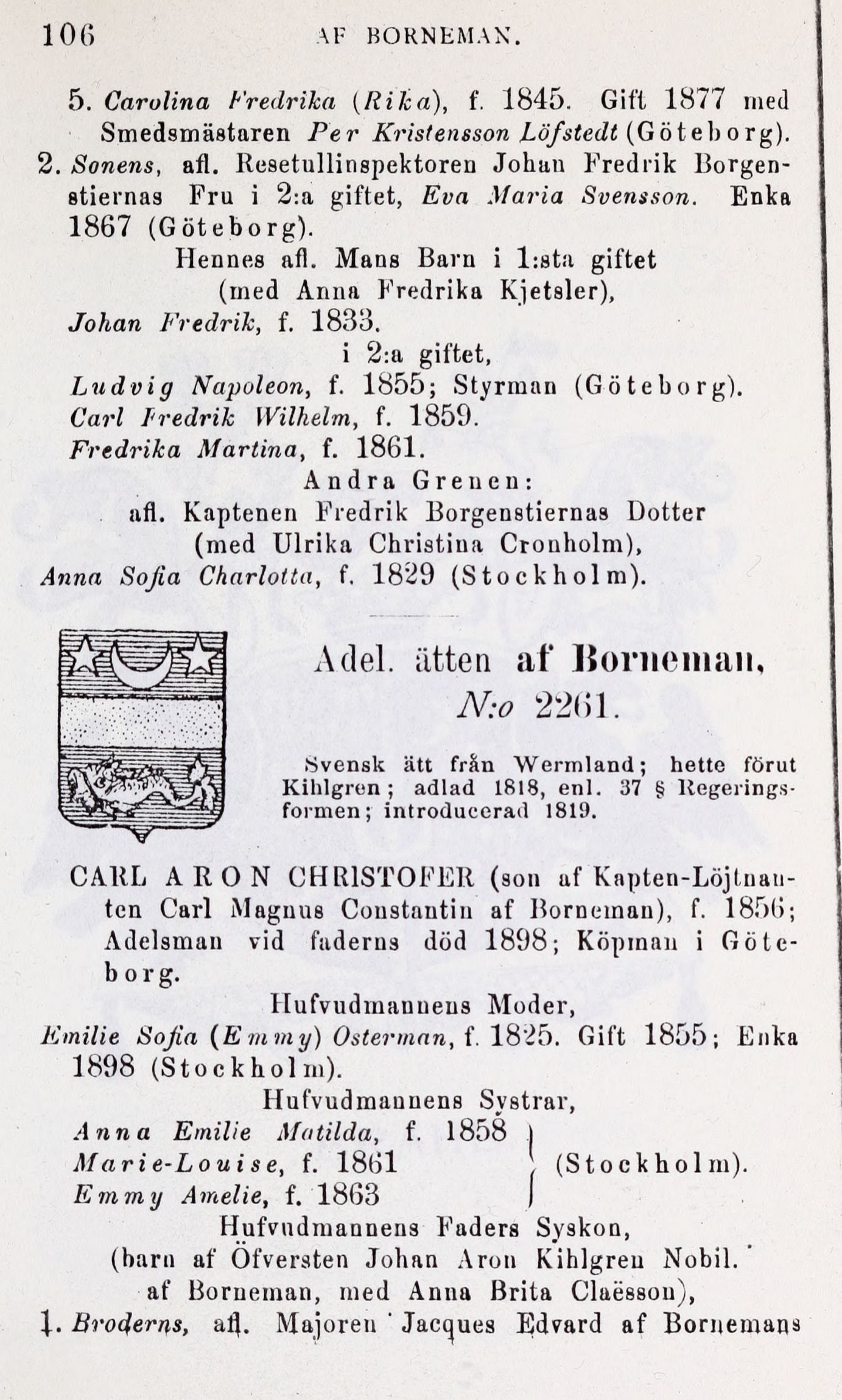 Kapten-Löjtnanten Carl Magnus Constantin af Bomeman), f. 1856;