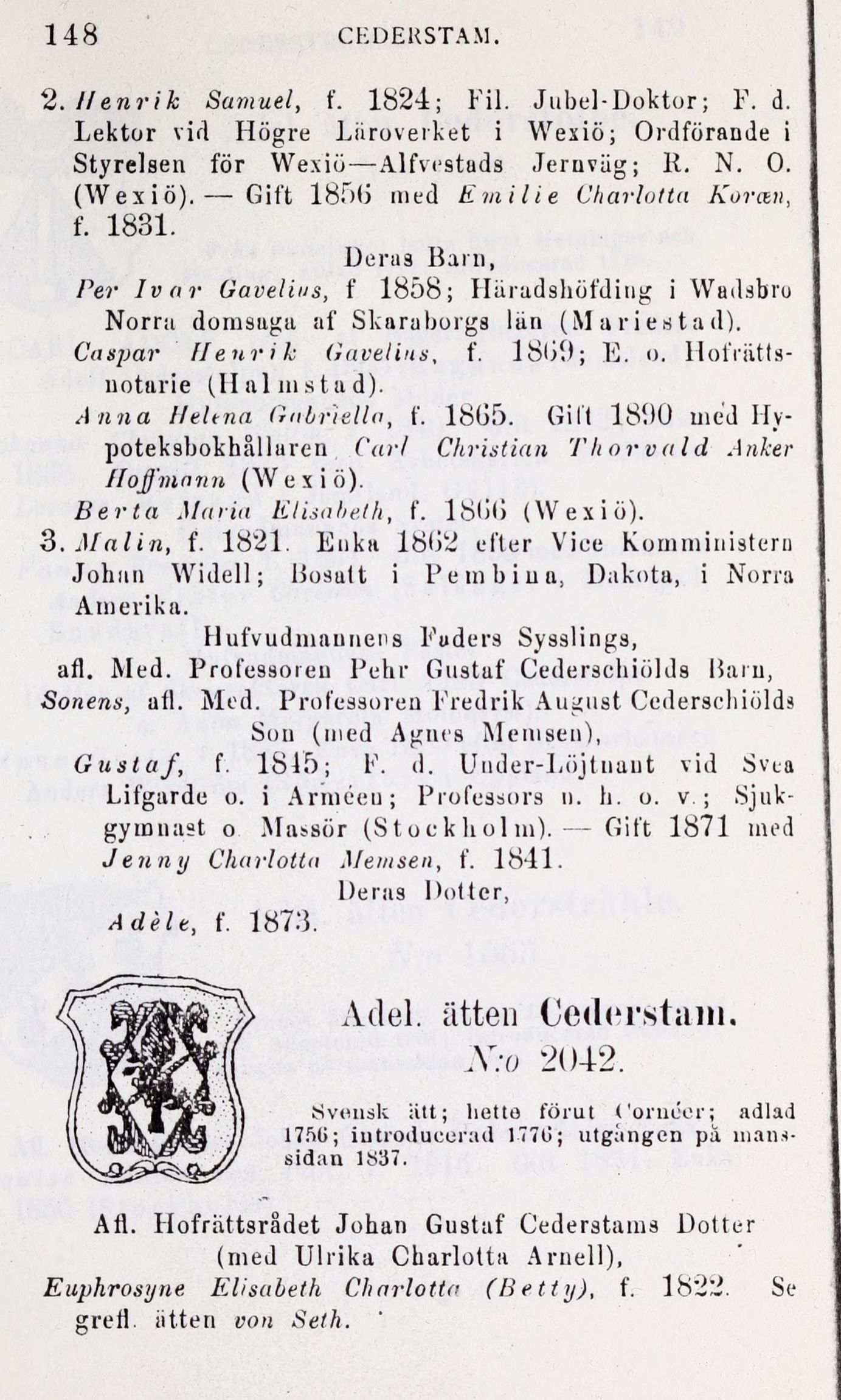 2. Henrik Samuel, t’. 1824; Fil. Jubel-Doktor; F. d.
