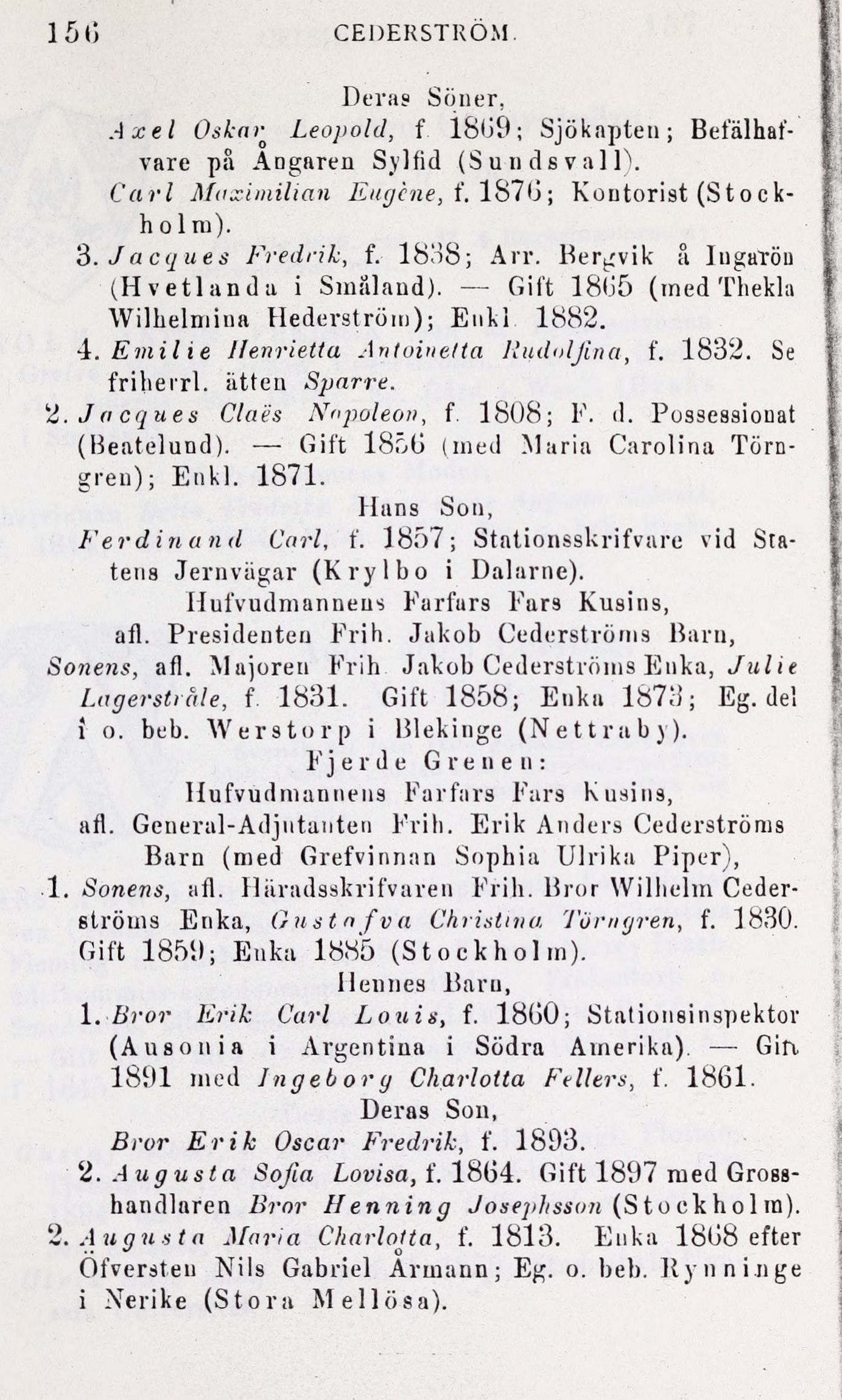 1. Sonens, afl. Häradsskrifvaren Frih. Bror Wilhelm