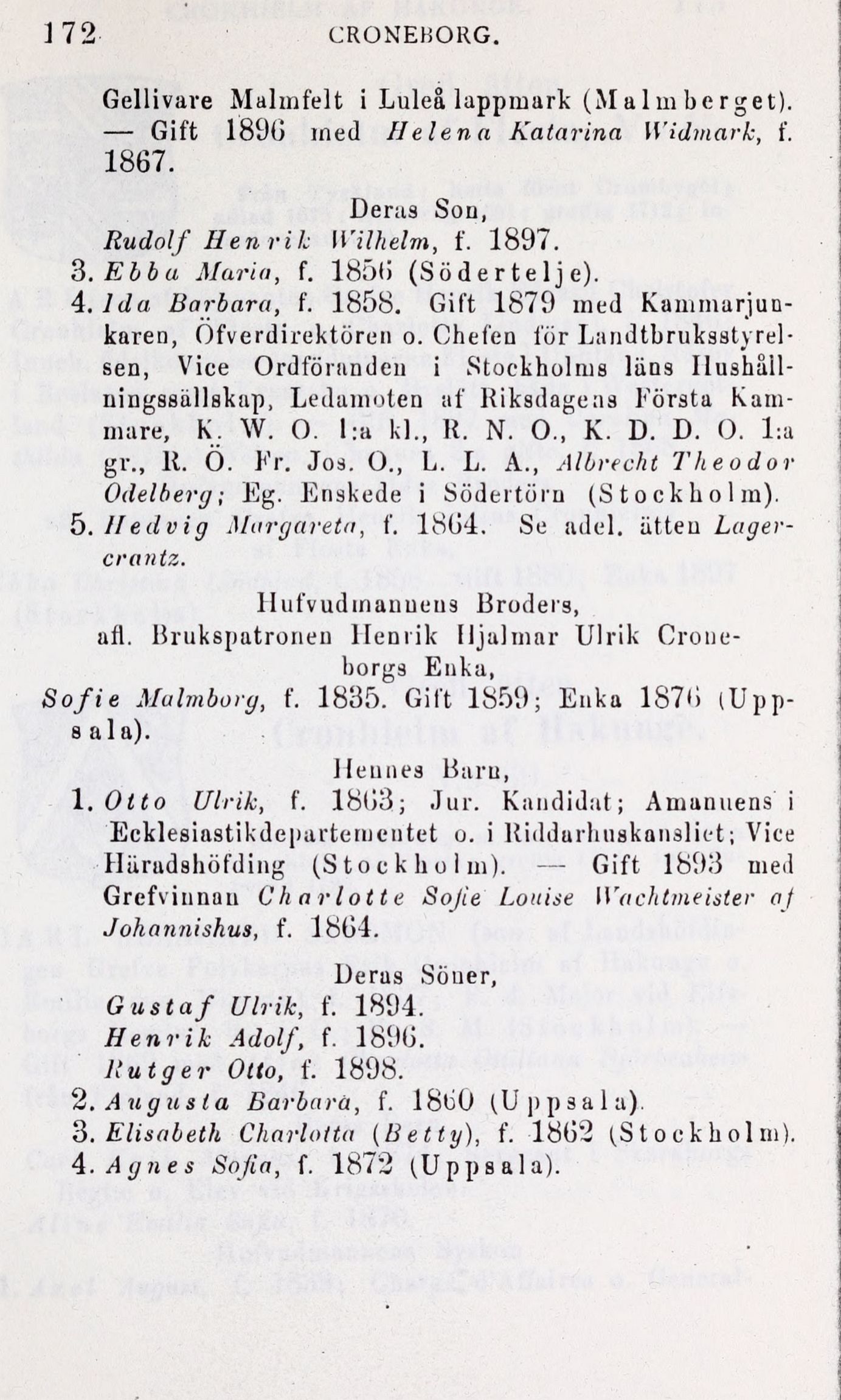 1.	Otto Ulrik, f. 1863; Jur. Kandidat; Amanuens i