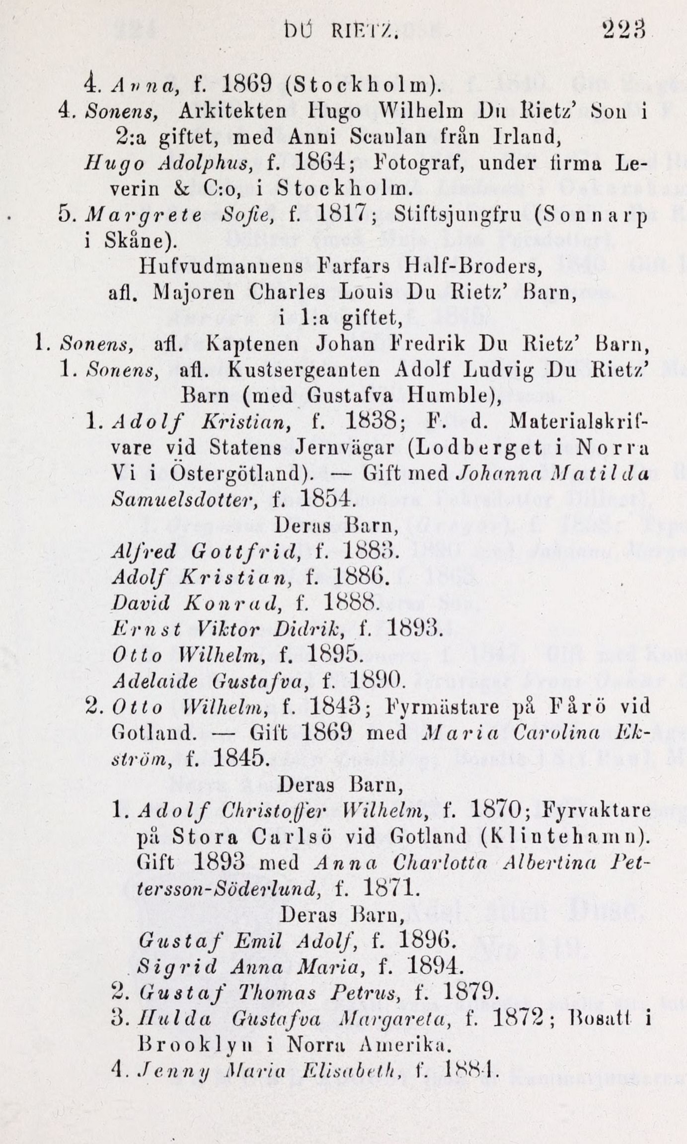1. Sonens, afl. Kaptenen Johan Fredrik Du Rietz’ Barn,