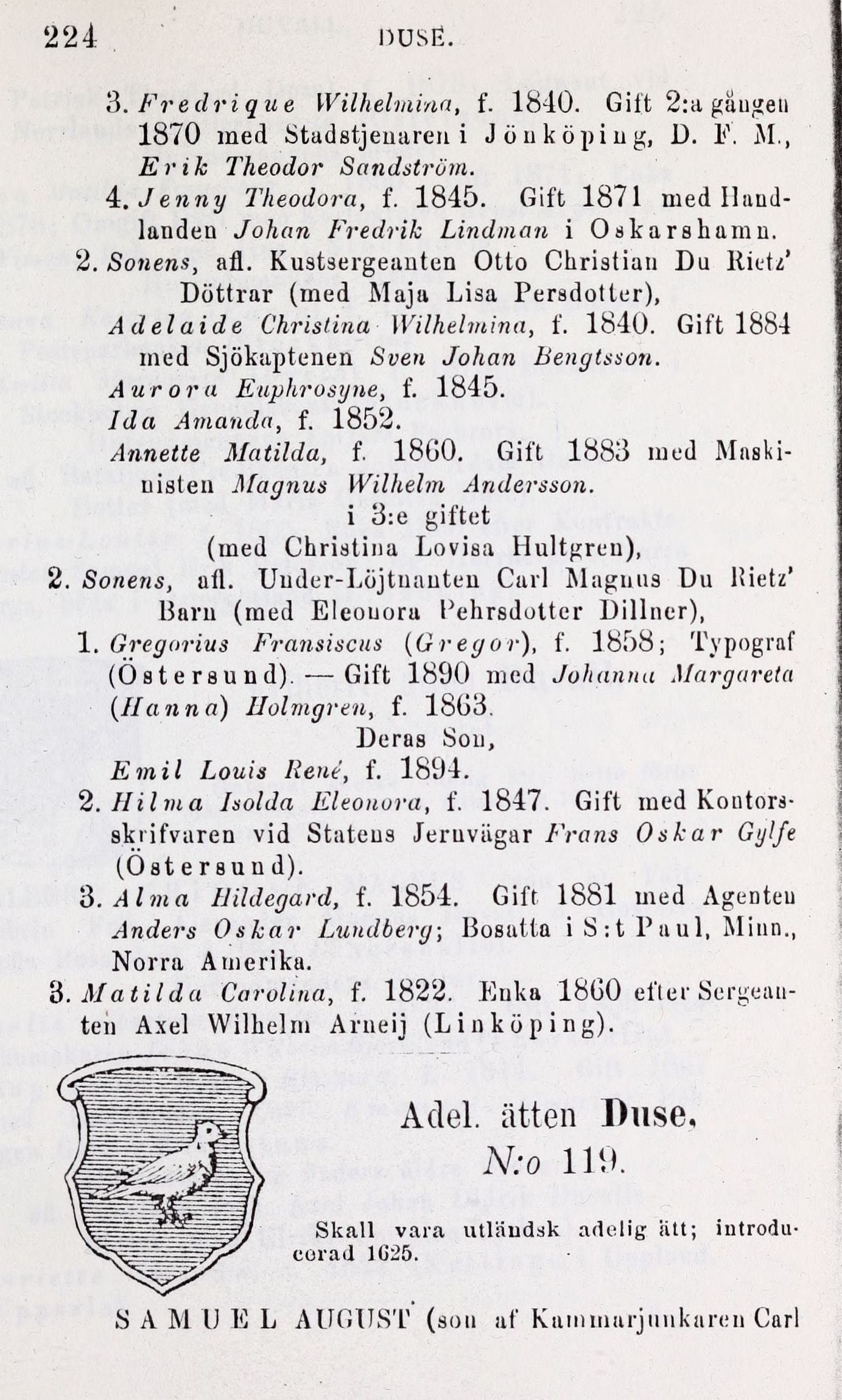 2. Sonens, afl. Kustsergeanten Otto Christian Du Rietz’