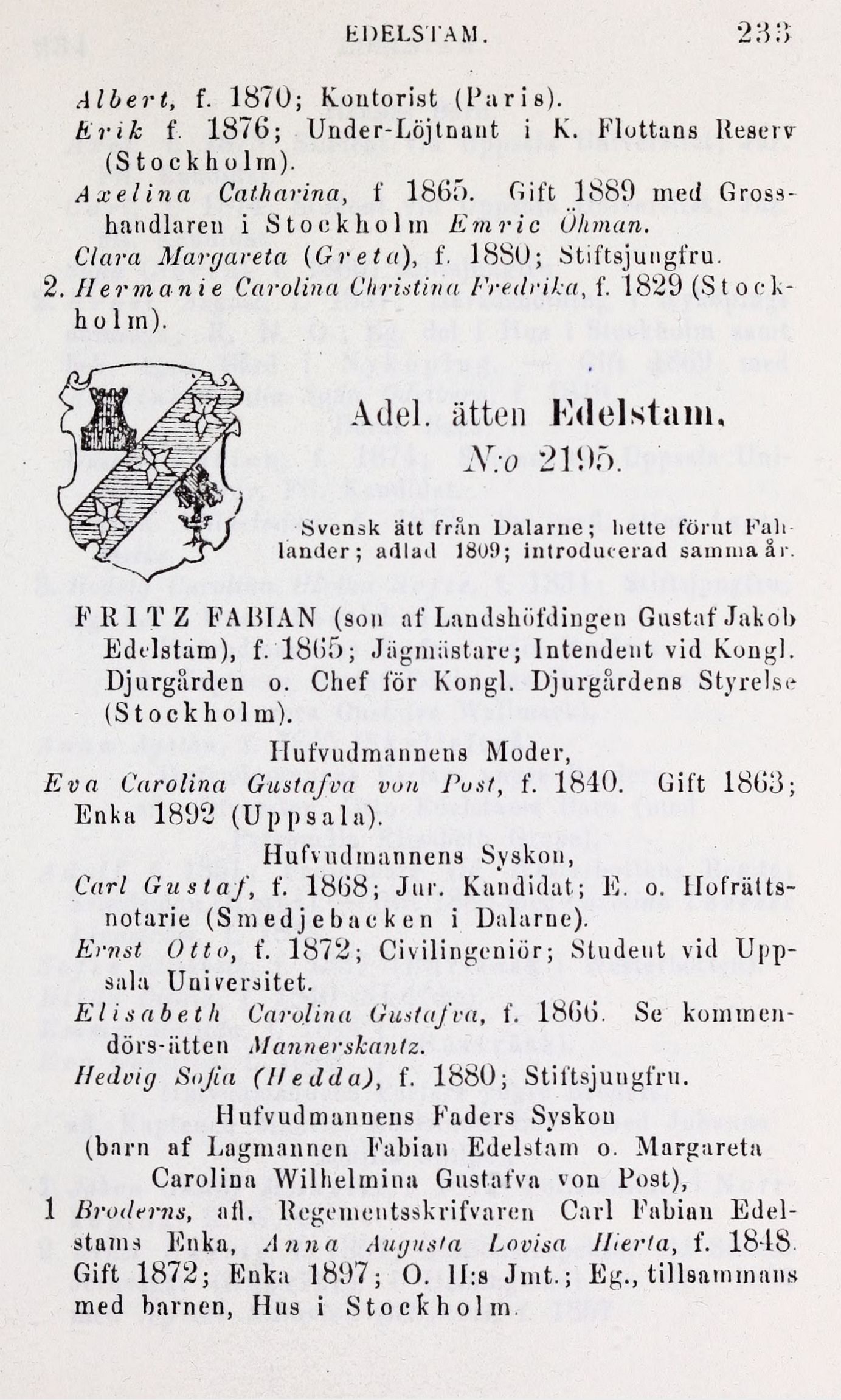 Edelstam), f. 1865; Jägmästare; Intendent vid Kongl.