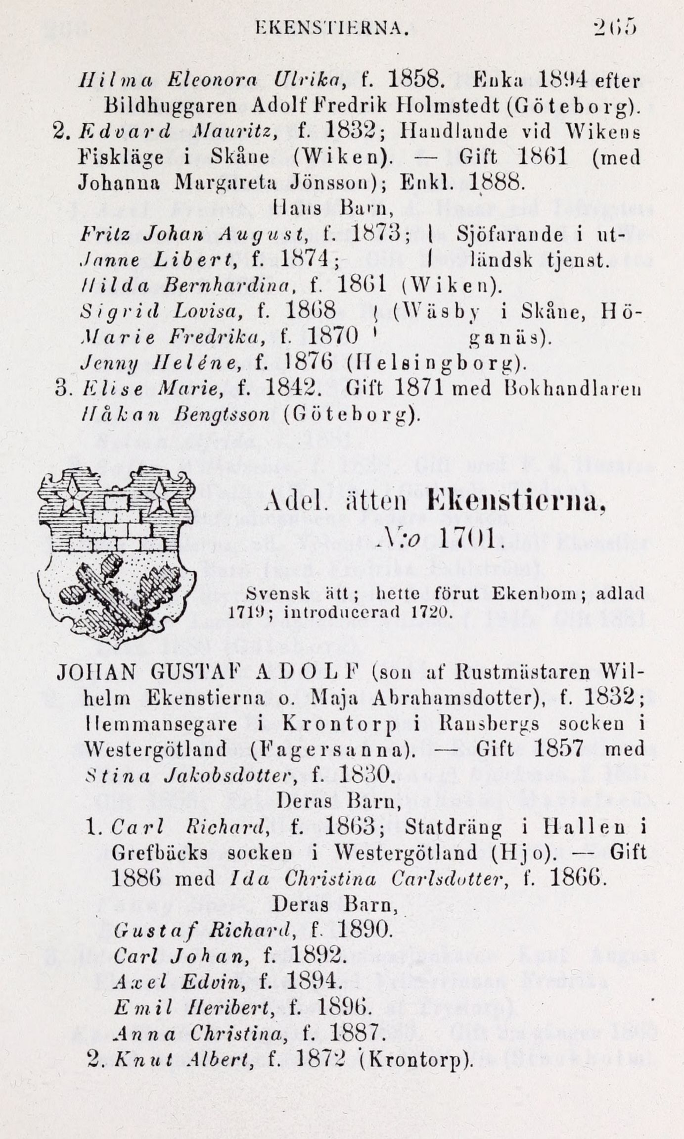 Wilhelm Ekenstierna o. Maja Abrahamsdotter), f. 1832;