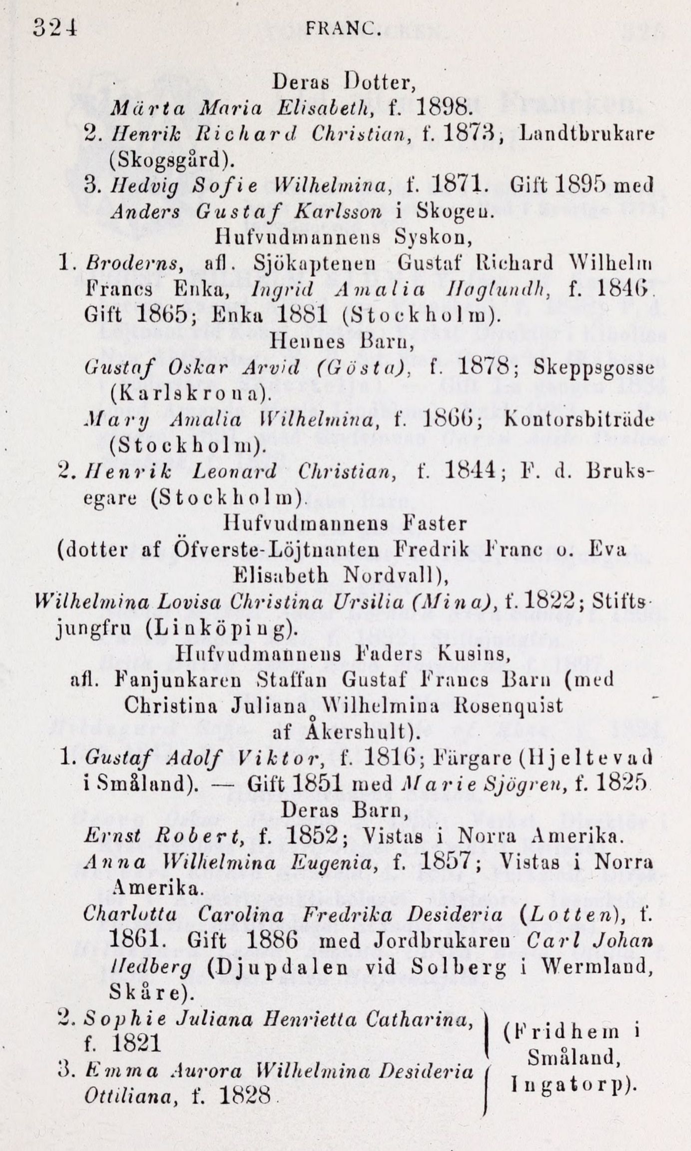 Francs Enka, Ingrid Amalia llaglundh, f. 1846