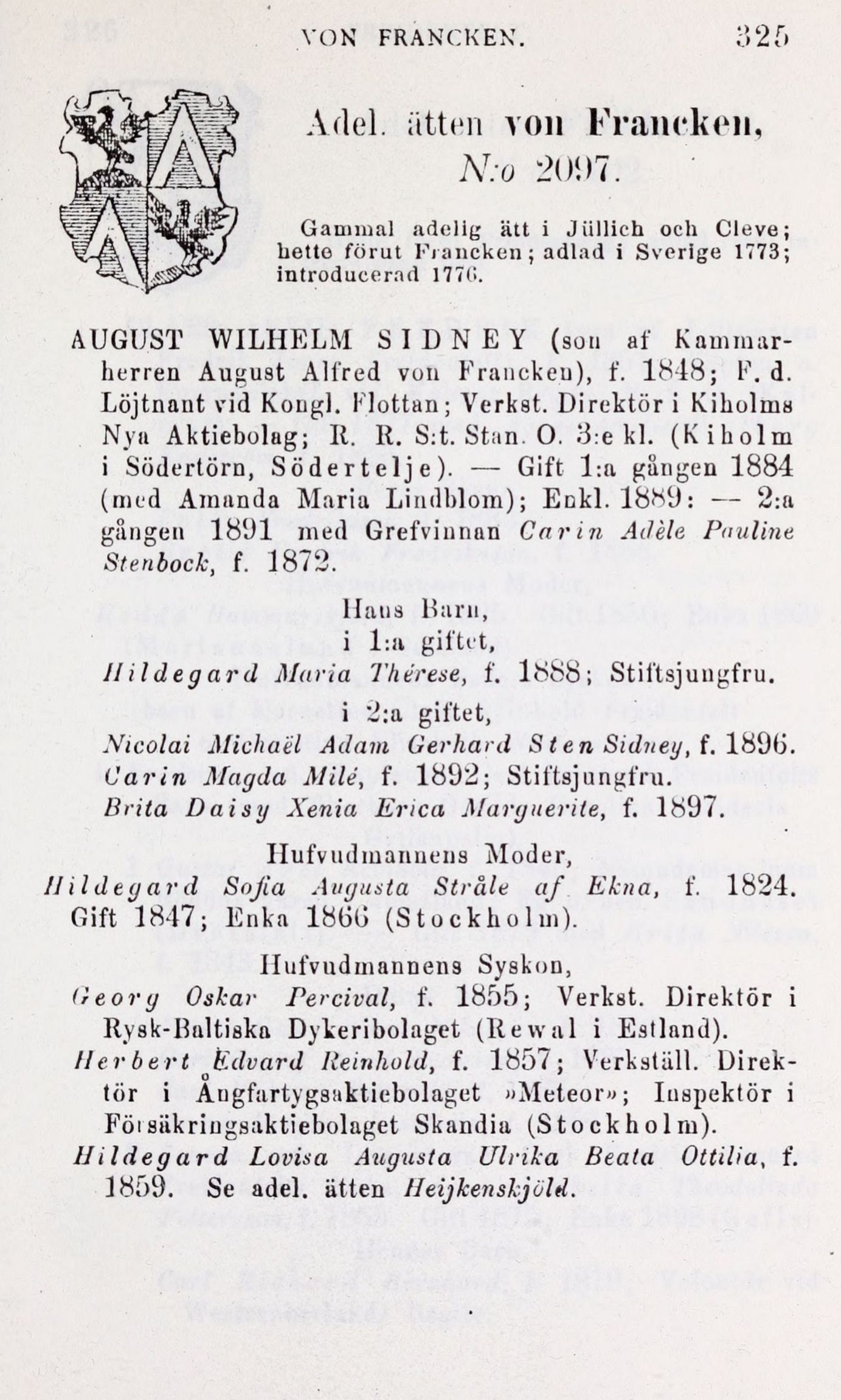 Adel. ätten von Fränckel|,