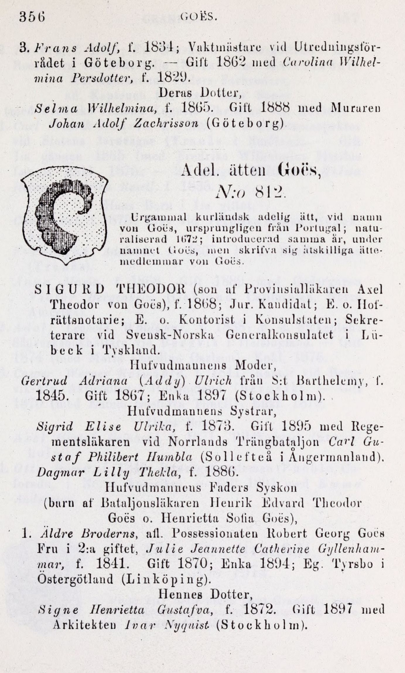 Theodor von Goes), f. 18(58; Jur. Kandidat; E. o.