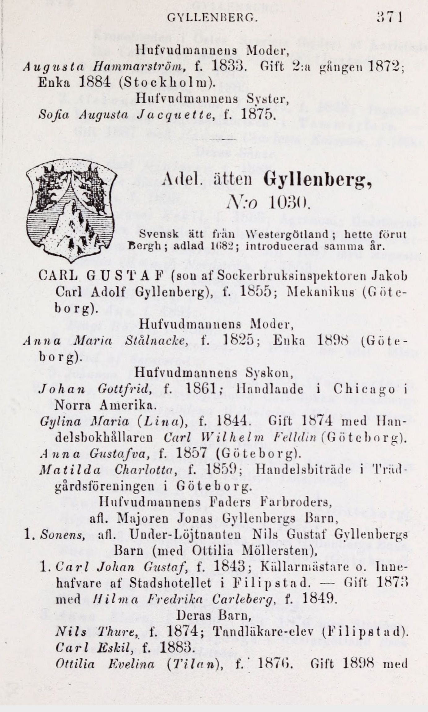 1. Sonens, afl. Under-Löjtnauteu Nils Gustaf Gyllenbergs