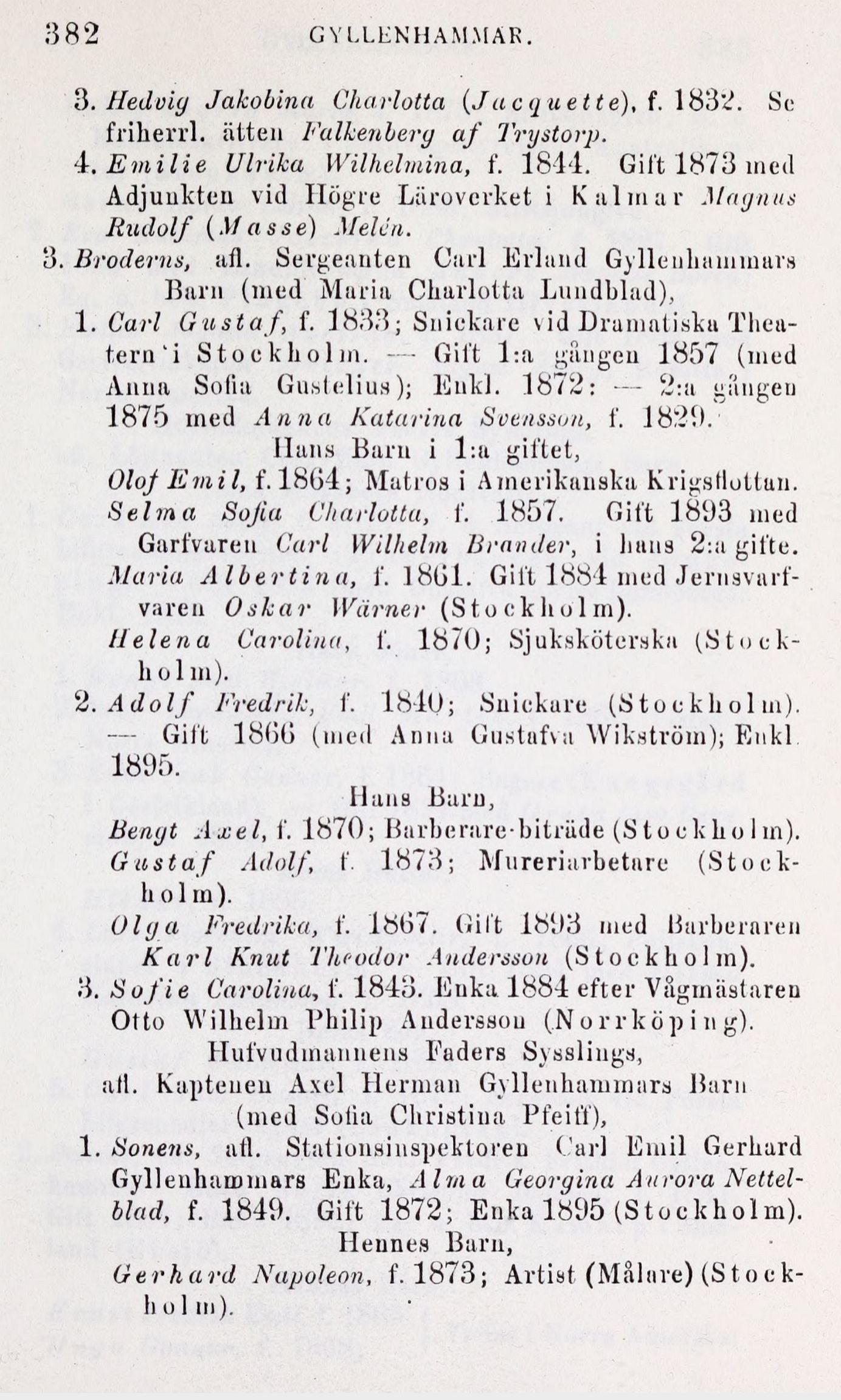 2. Adolf Fredrik, f. 1840; Snickare (Stockholm).