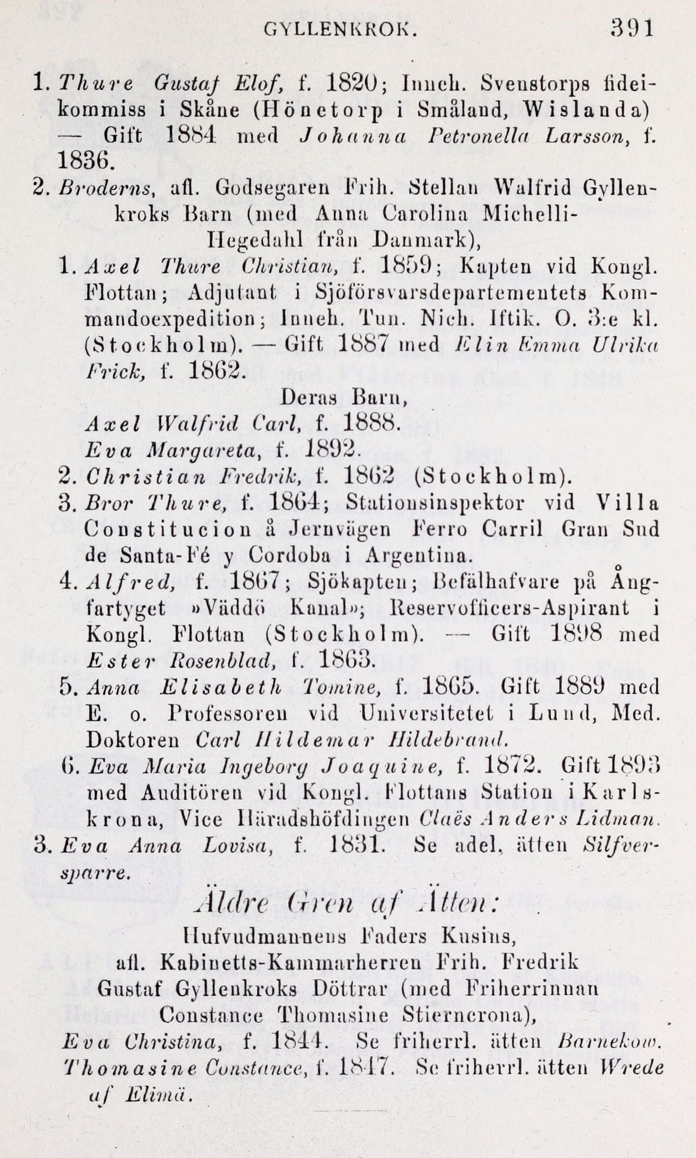 1. Thure GustaJ Elof, f. 1820; Inuch. Sveustorps