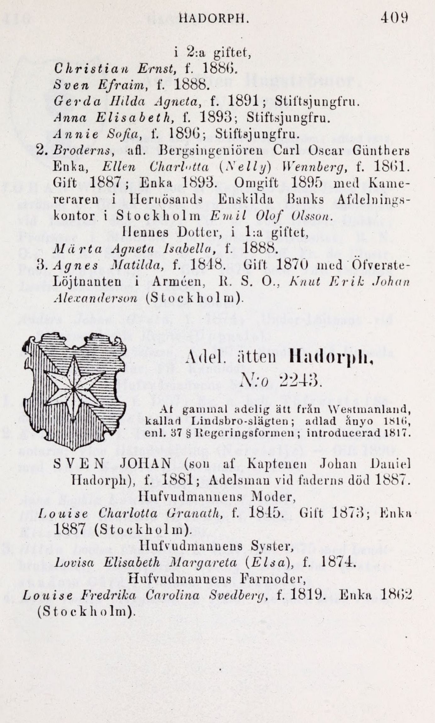 Hadorph), f. 1881; Adelsman vid faderns död 1887.