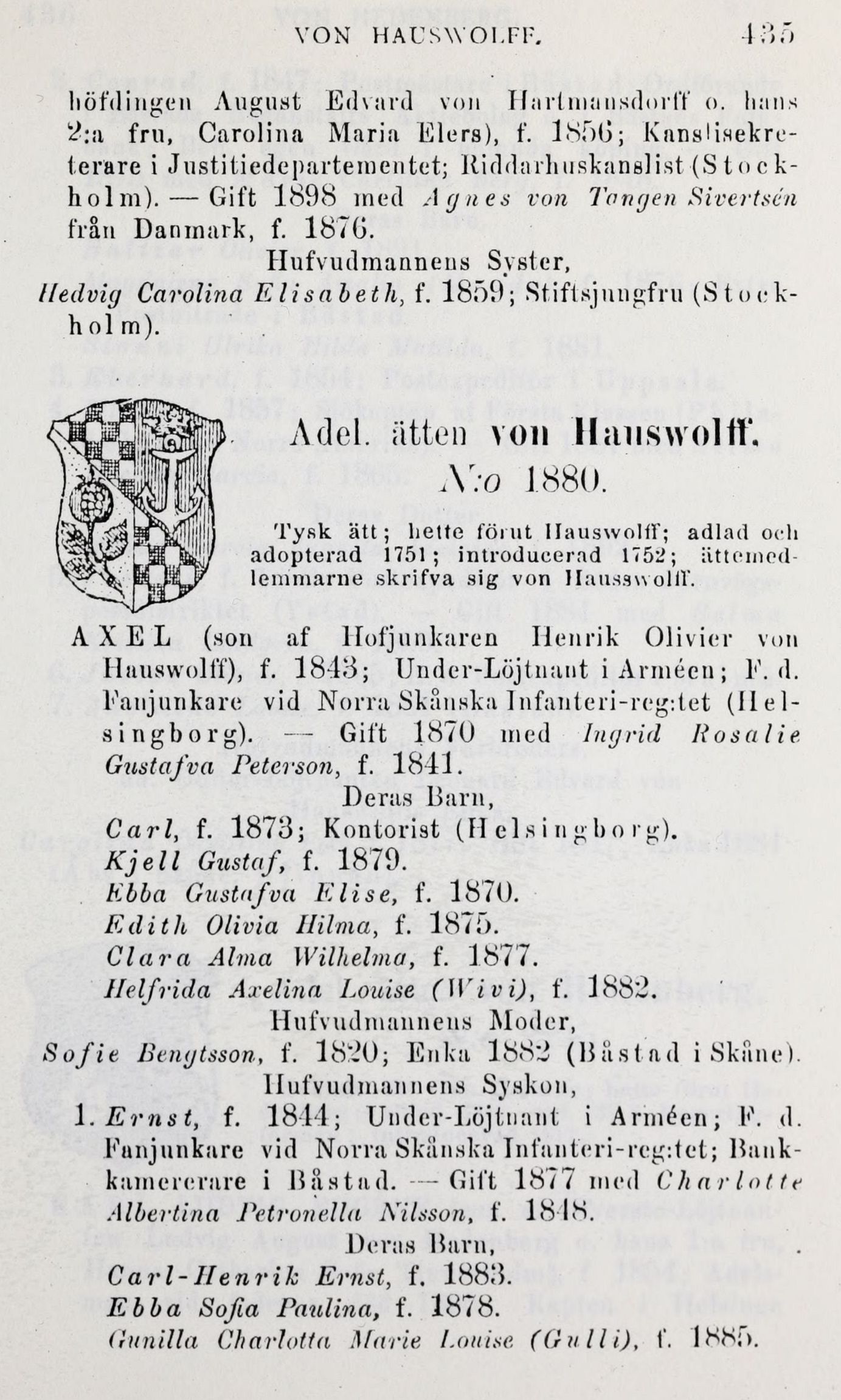 Tysk ätt; lielte förut HauswoIfF; adlad och