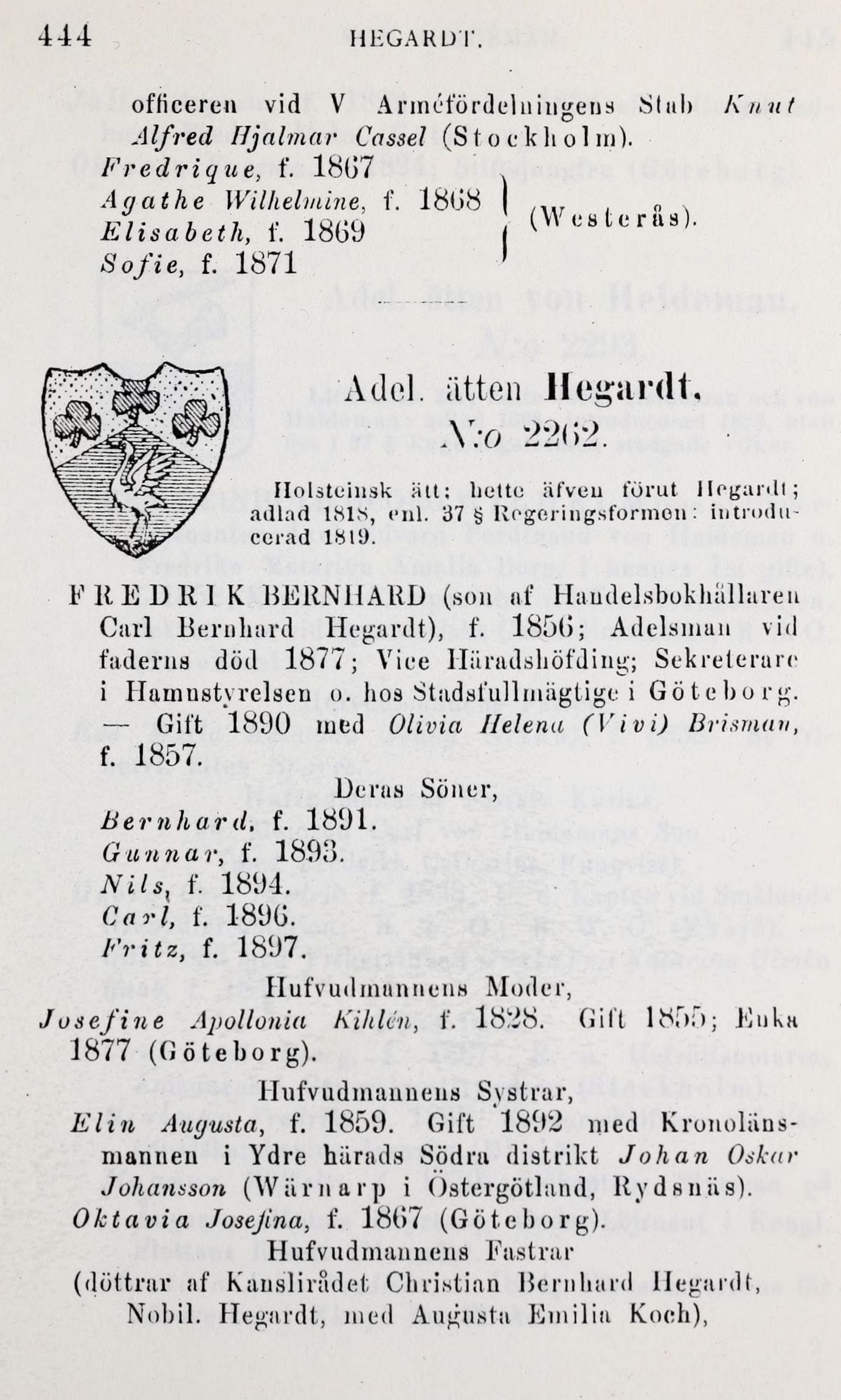 Nobil. Hegardt, med Augusta Emilia Koch),