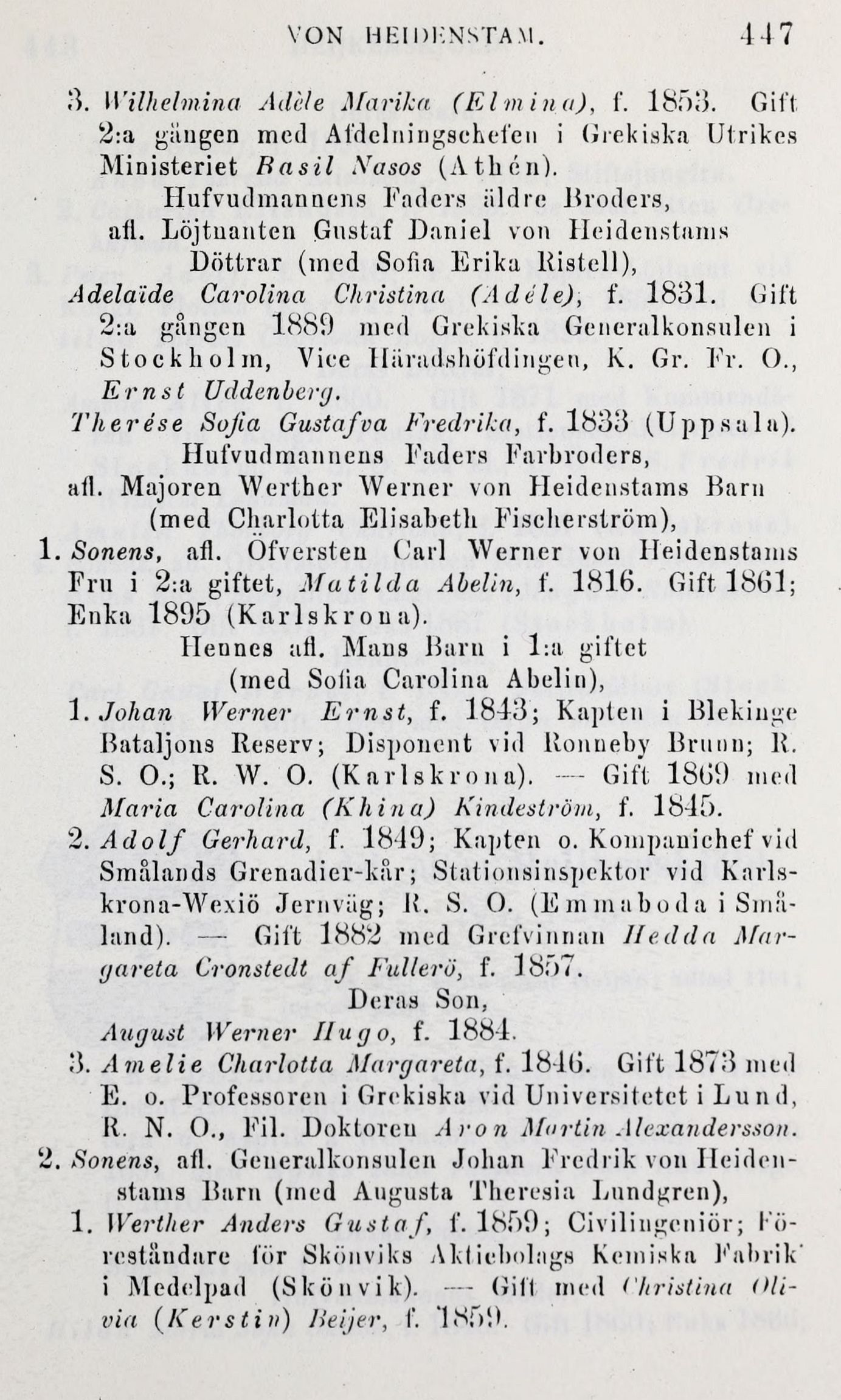 1. Sonens, afl. Öfversten Carl Werner von Heidenstams