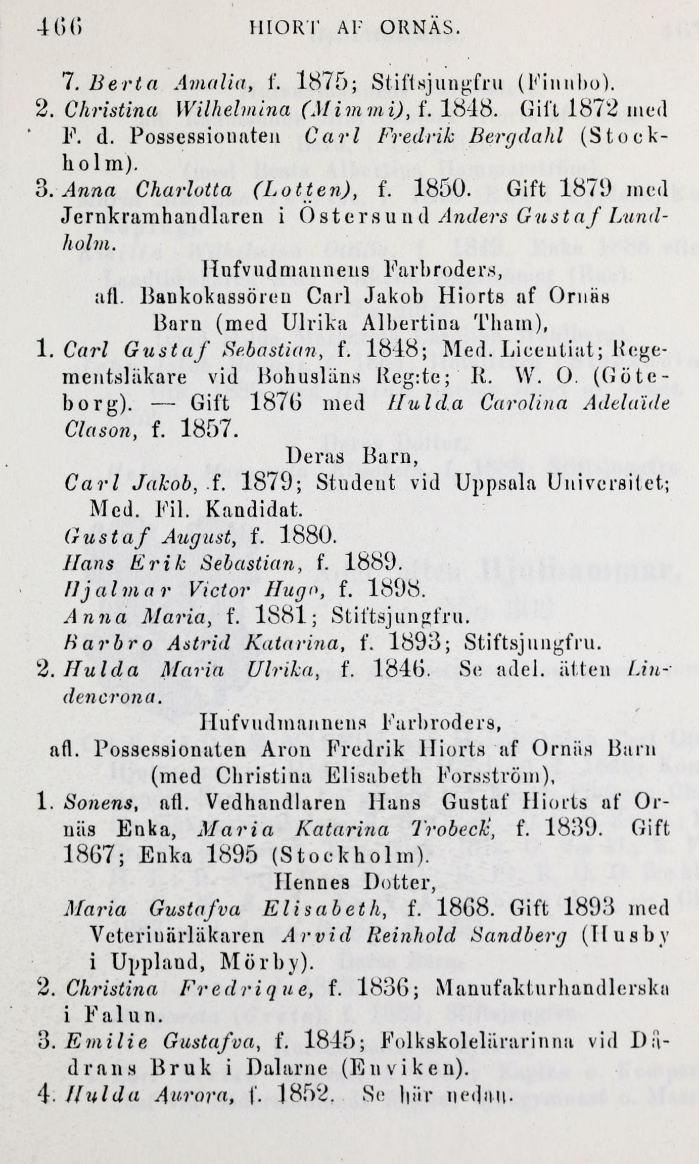 2. Hulda Maria Ulrika, f. 1846. Se adel. ätten