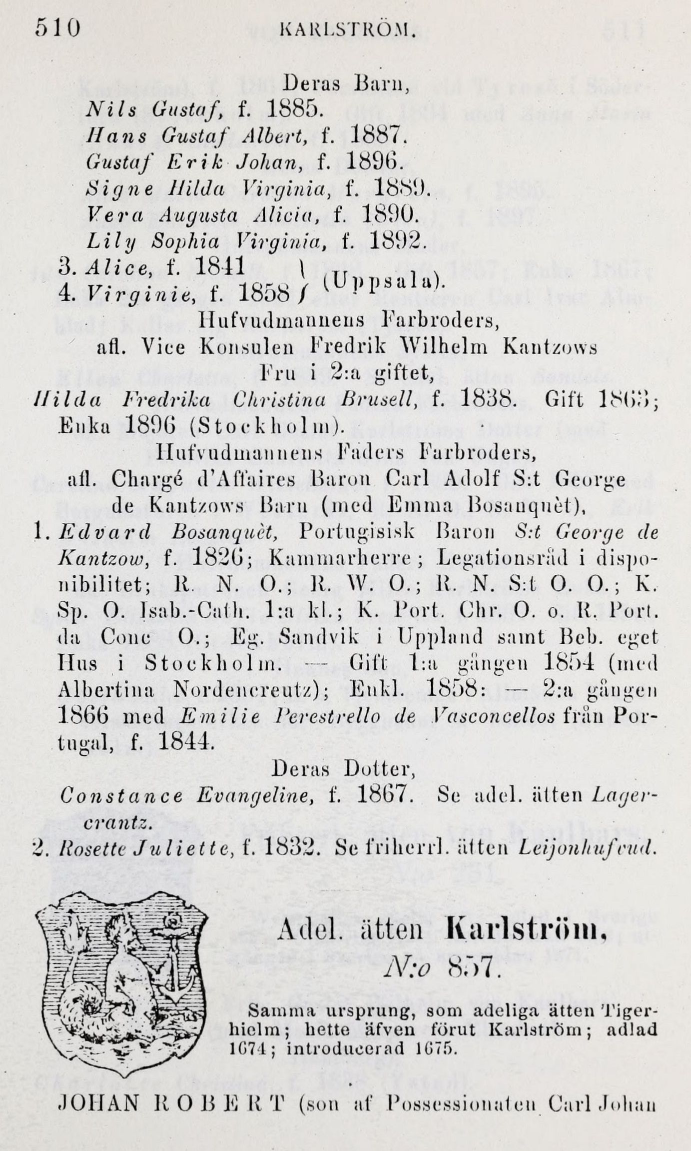 Tiger-hiclm; hette äfven förut Karlström; adlad