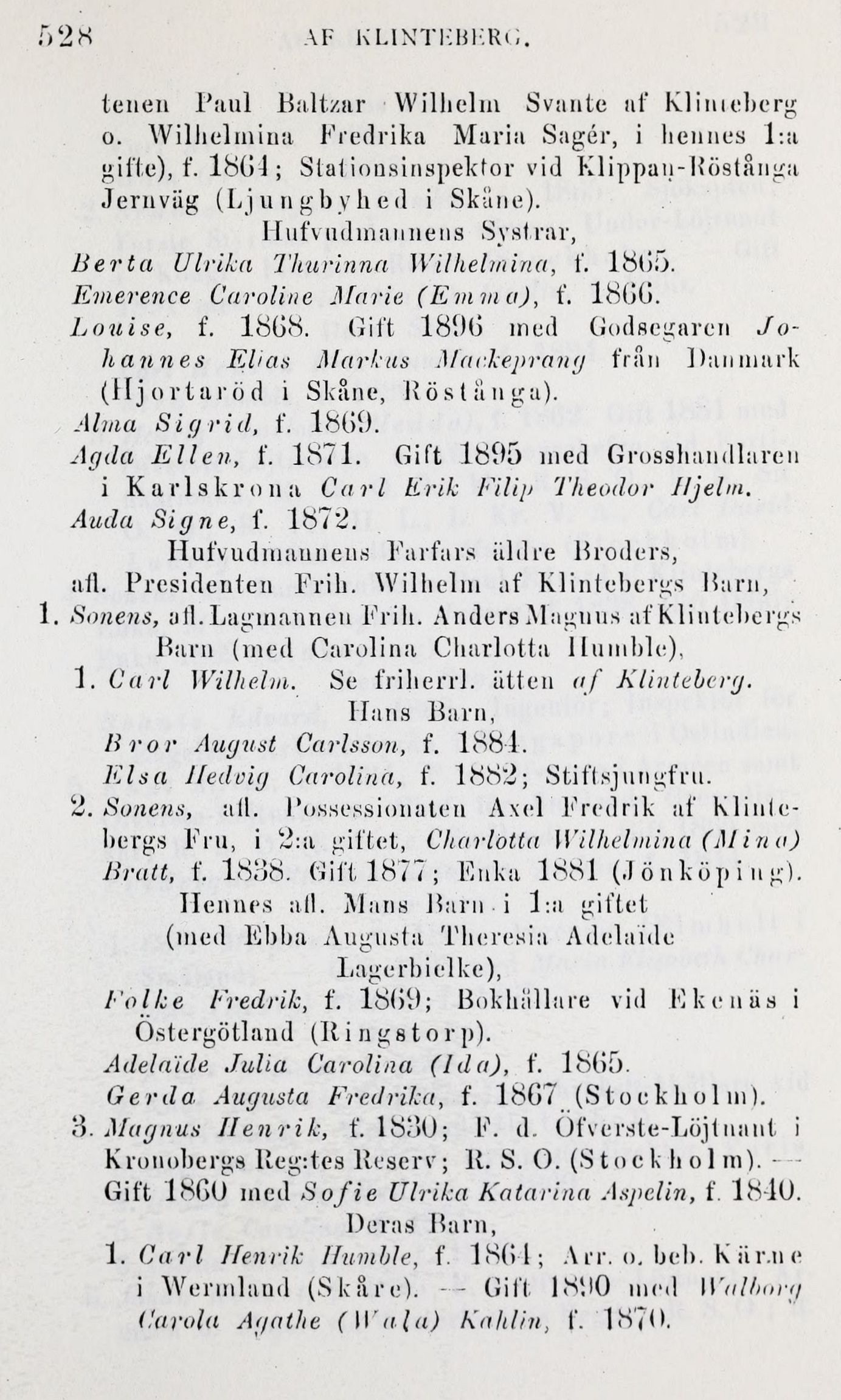 gifte), f. 18G1; Stationsinspektor vid Klippau-Röstånga