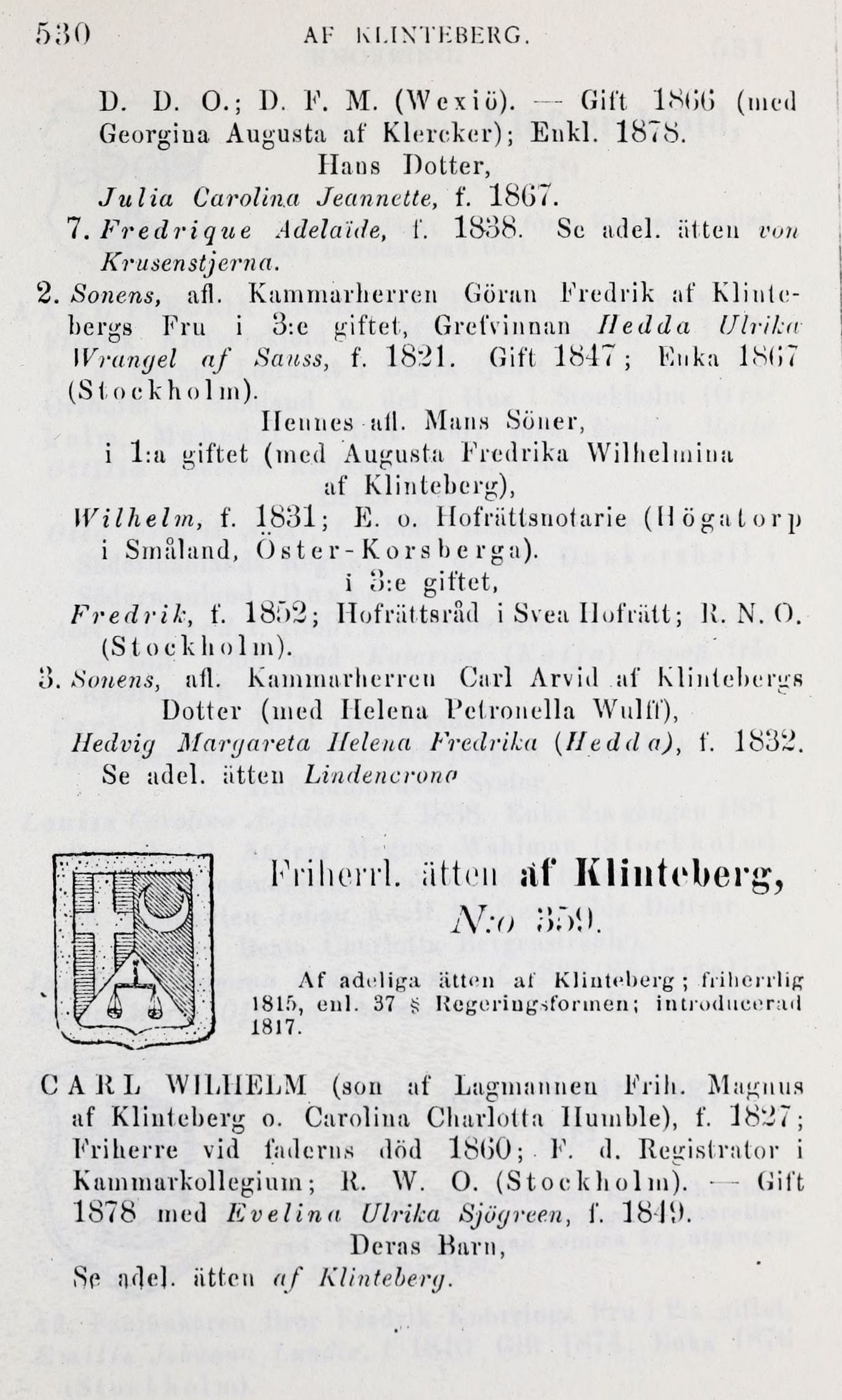 3. Sonens, afl. Kammarherren Carl Arvid af klintebergs