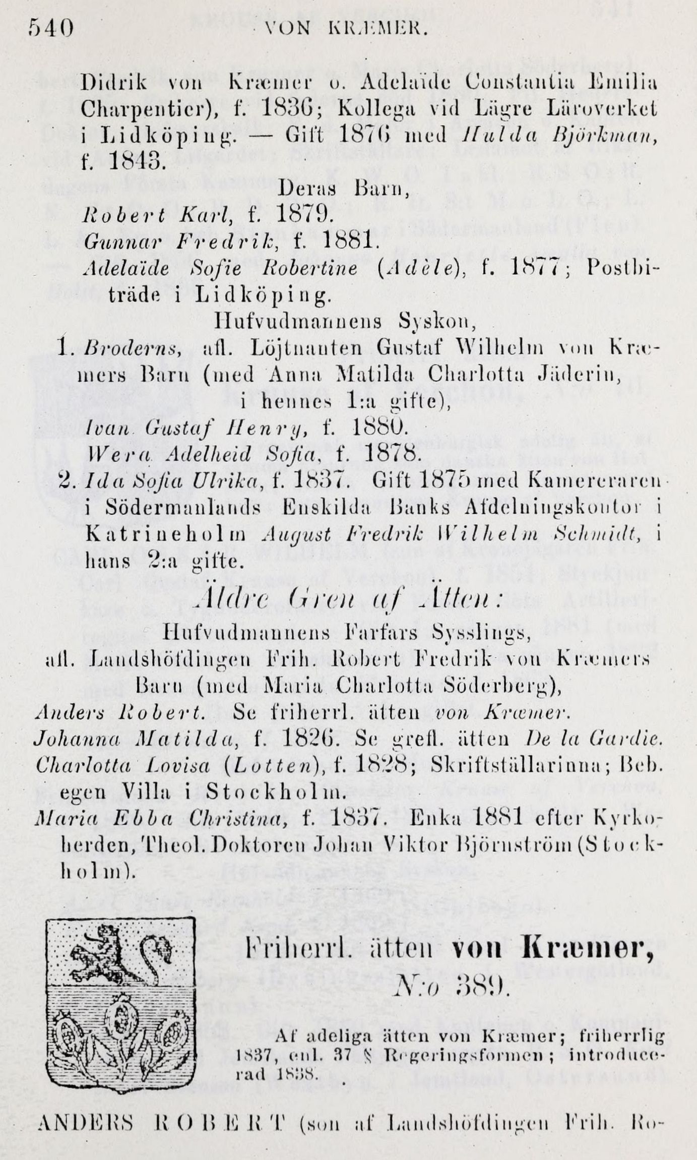 Frilierrl. ätten von Kræmer,
